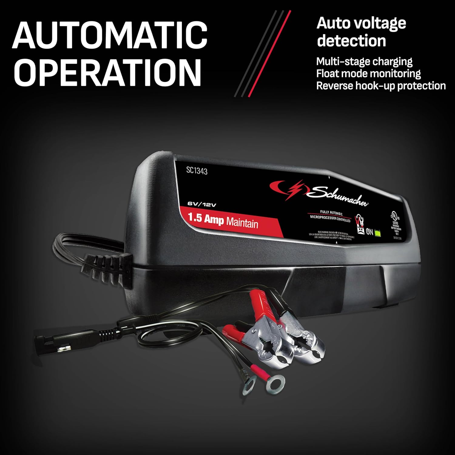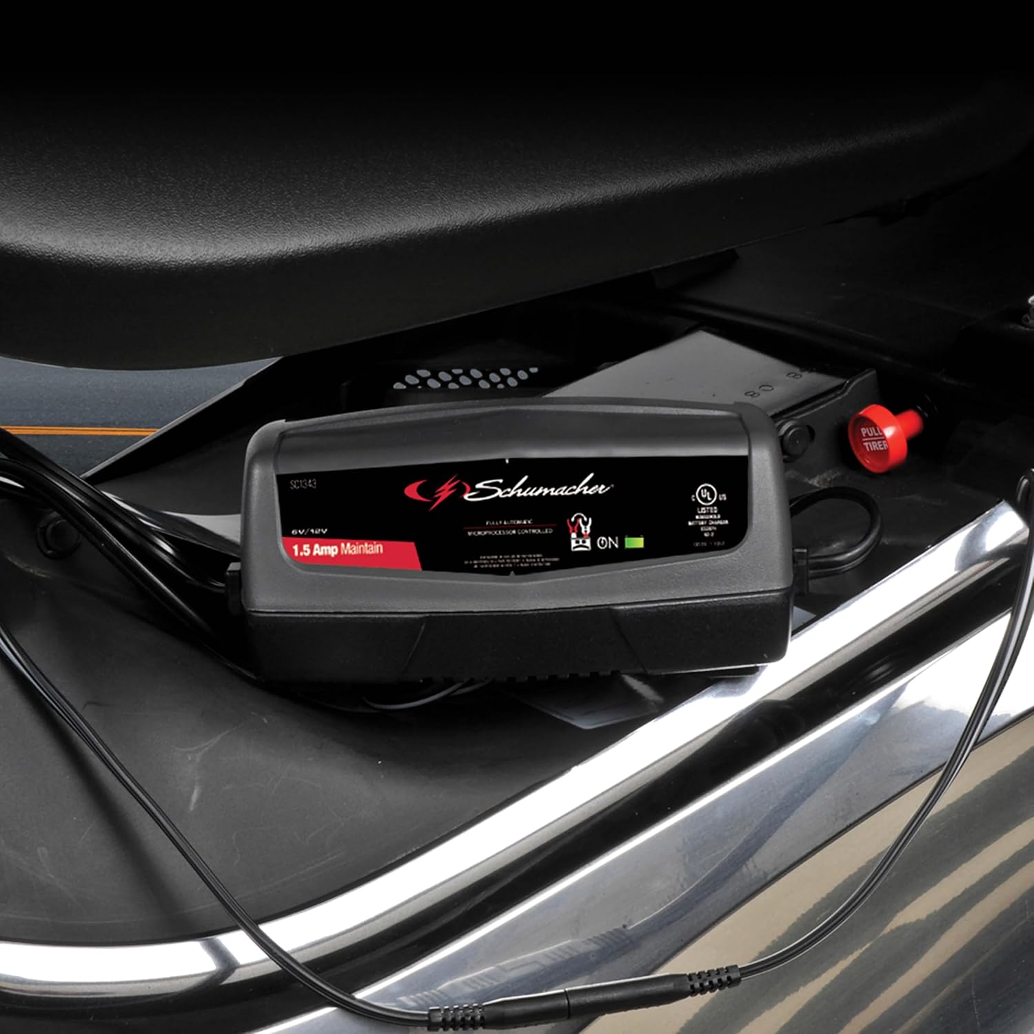 I owned two Schumacher trickle chargers that I used on my motorcycle and my lawn mower for the past 11 years. One of them finally quit working. So, naturally, I wanted to replace it with another Schumacher. I hope this one will last at least as long as the previous one did. The new one came with the correct attachment to charge my motorcycle and it has an attachment so it can be attached directly to a battery. Quality product.