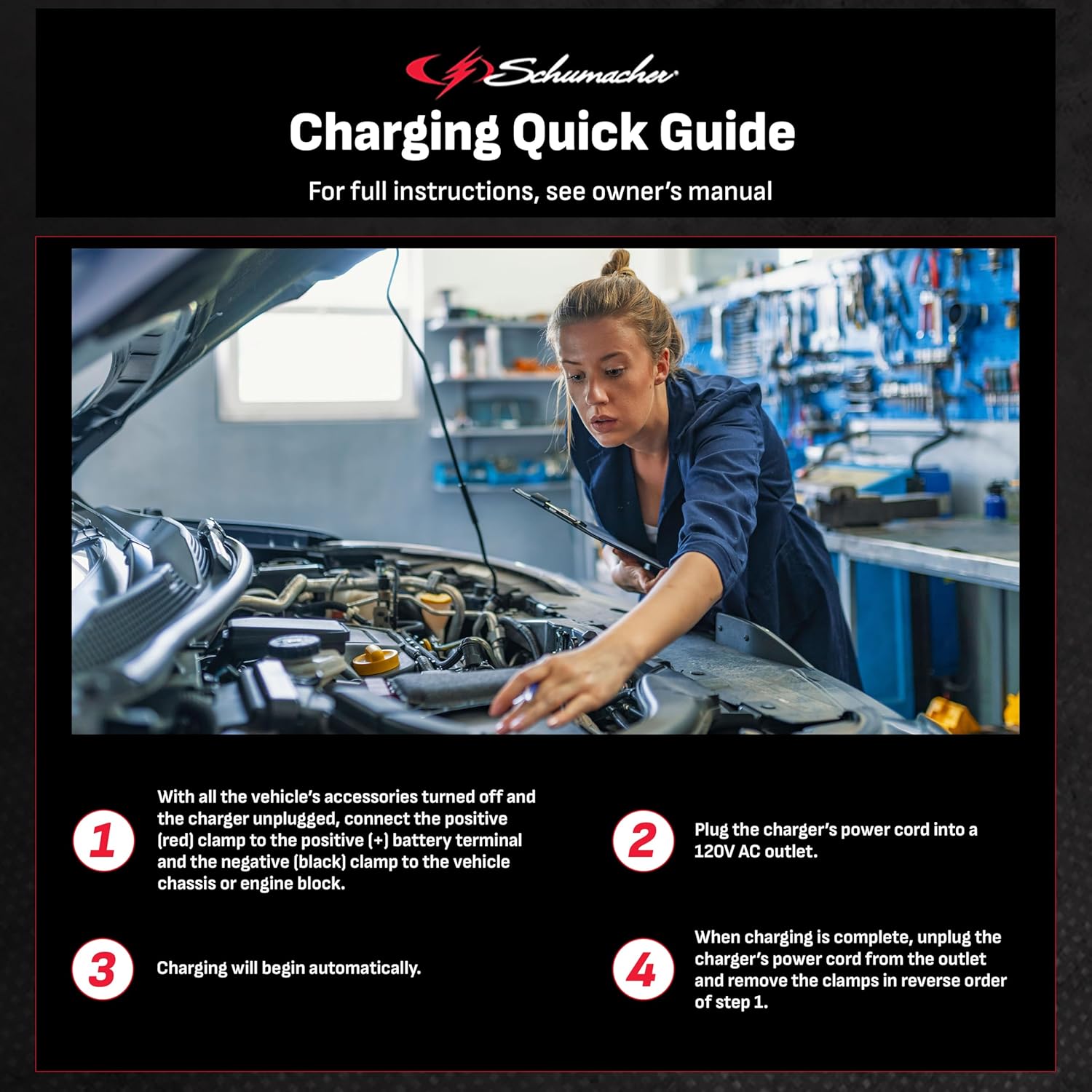 Uma das inovações mais notáveis do Schumacher SC1343 é a detecção automática de voltagem, que identifica a voltagem da bateria conectada antes de iniciar o carregamento. Isso não só facilita o uso, mas também assegura que o processo de carregamento seja seguro e eficiente. O modo de desulfatação é outro recurso que se destaca, permitindo a recuperação de baterias sulfatas, restaurando sua capacidade e prolongando sua vida útil.