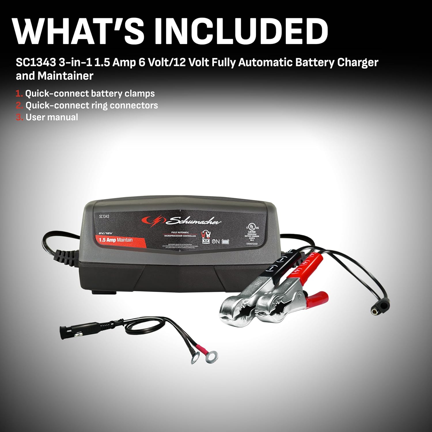I owned two Schumacher trickle chargers that I used on my motorcycle and my lawn mower for the past 11 years. One of them finally quit working. So, naturally, I wanted to replace it with another Schumacher. I hope this one will last at least as long as the previous one did. The new one came with the correct attachment to charge my motorcycle and it has an attachment so it can be attached directly to a battery. Quality product.