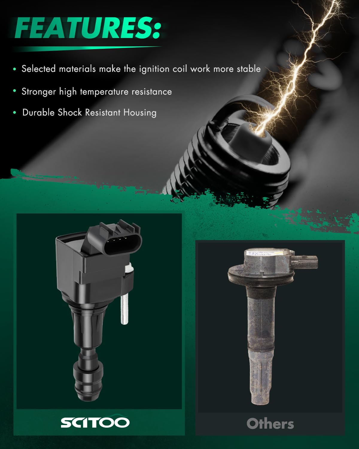 Descrição do Produto: SCITOO 4 Bobinas de Ignição com 4 Velas de Ignição de Irídio para Chevy, GMC, Pontiac e Saturn