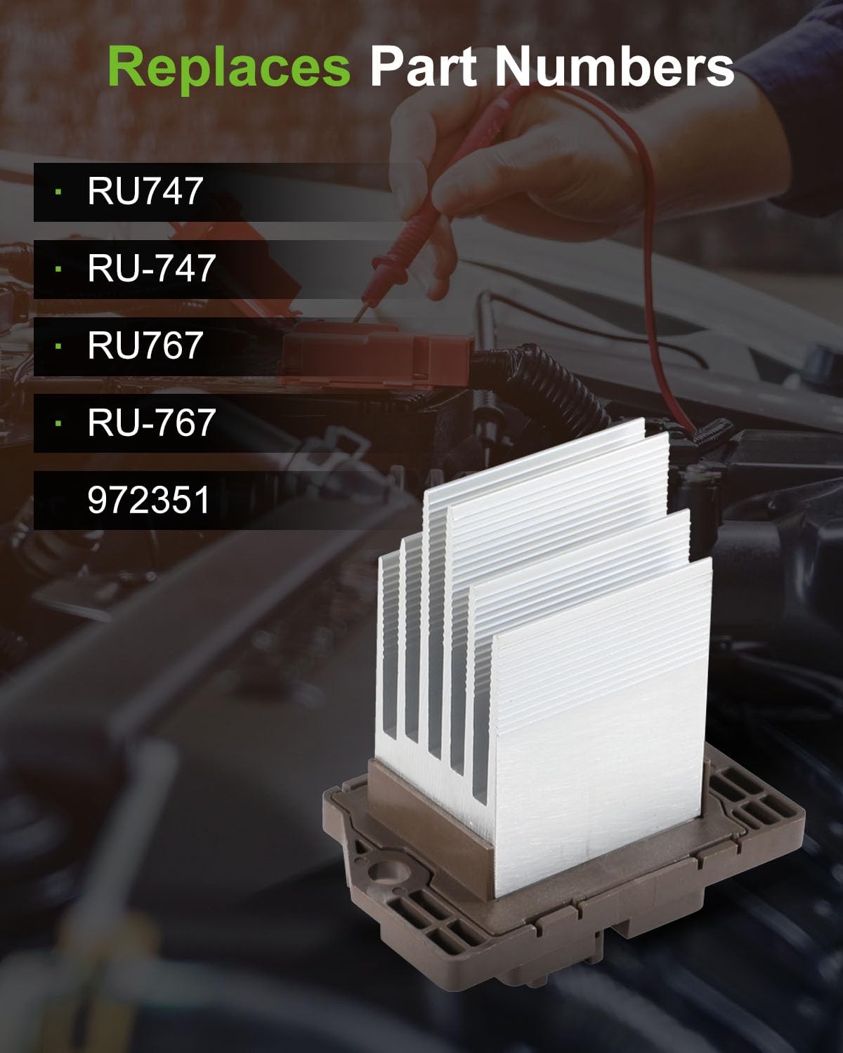 • FITMENT: O Resistor do Motor do Ventilador é compatível com os seguintes modelos: 2007-2010 para Hyundai Entourage, 2006-2012 para Hyundai Santa Fe, 2006-2008 para Hyundai Tiburon, 2008-2009 para Kia Amanti, 2006-2012 para Kia Sedona, 2014 para Kia Sedona e 2008 para Kia Sorento.