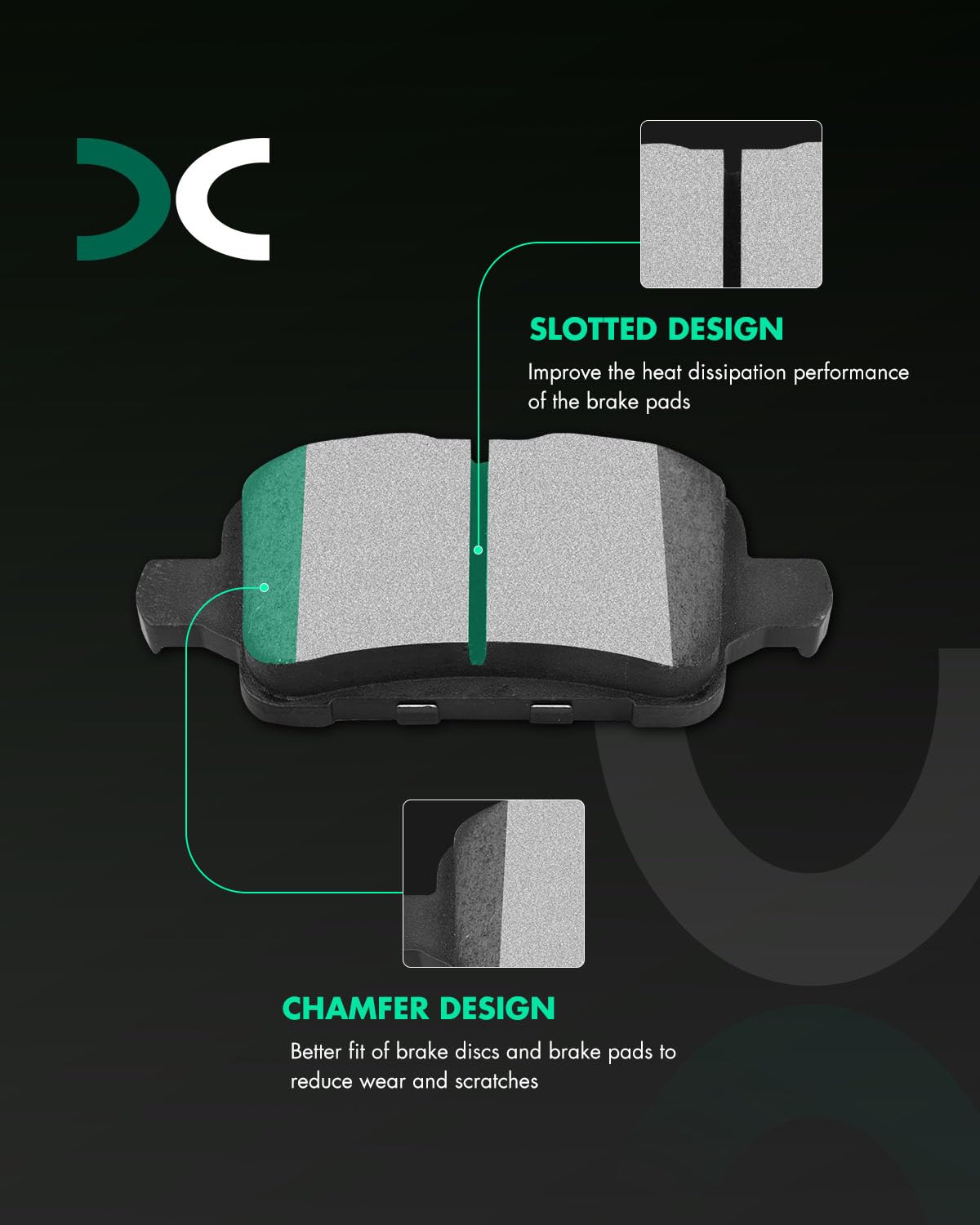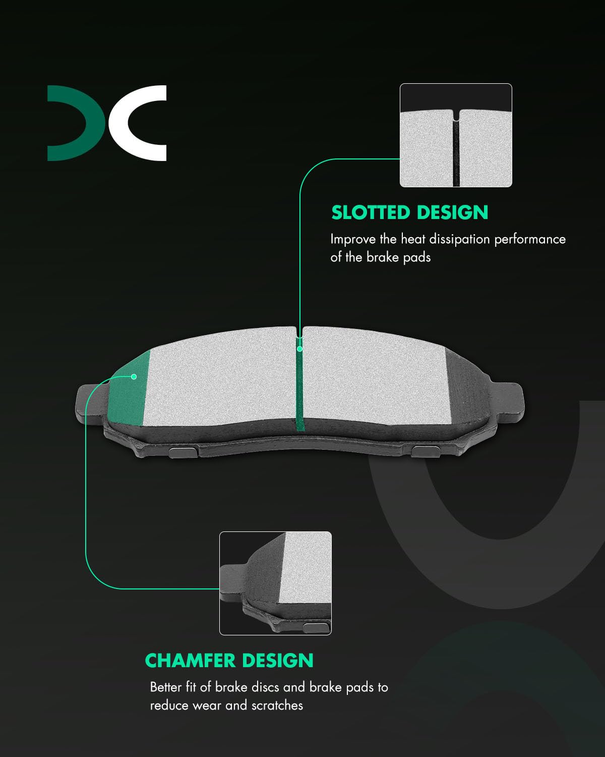 – [Aumento do Poder de Frenagem]: As pastilhas possuem ranhuras, chanfros e calços que reduzem a vibração e o ruído, proporcionando uma frenagem suave e silenciosa.