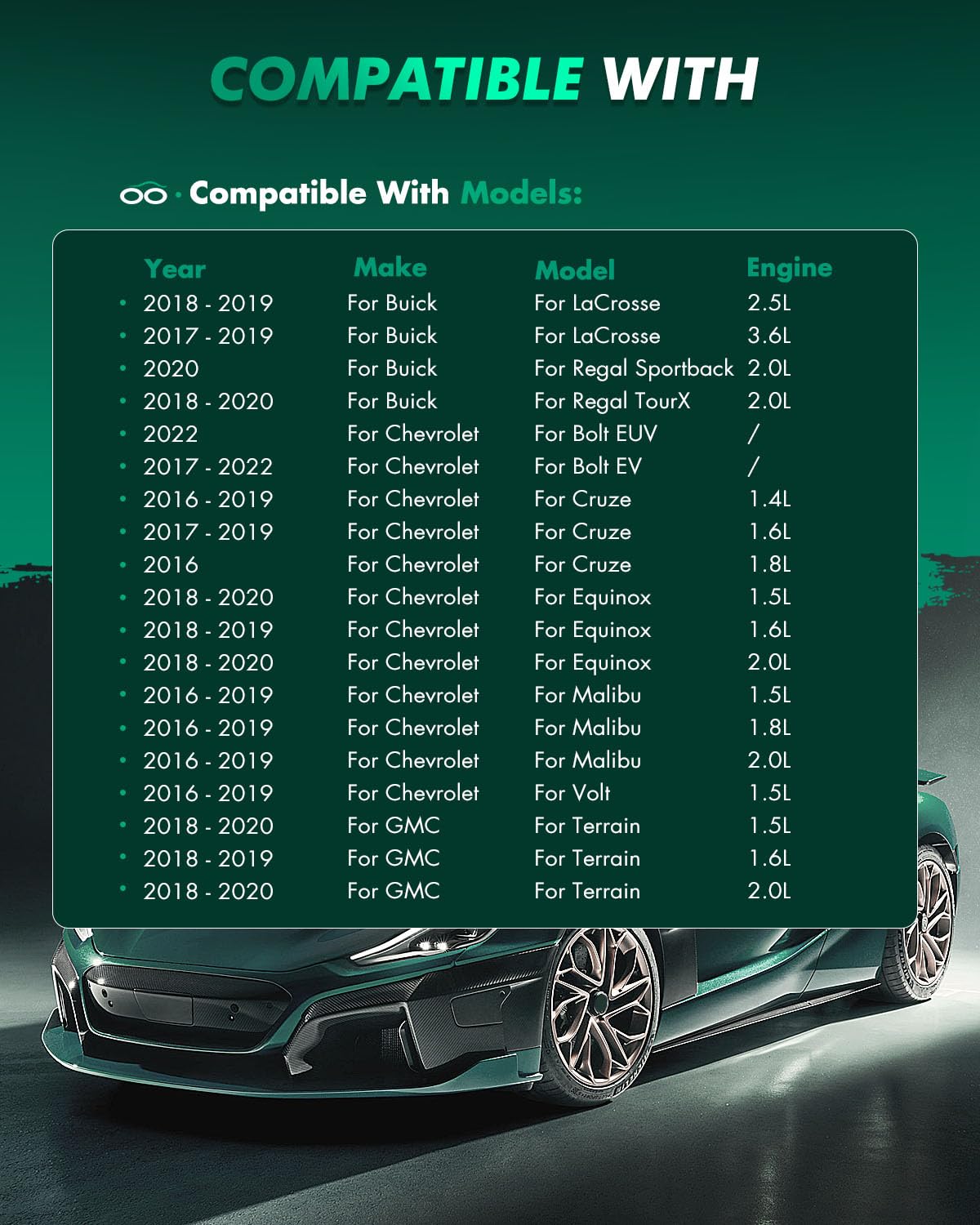 – Compatibilidade: Projetadas para uma ampla gama de modelos Buick e Chevrolet.
