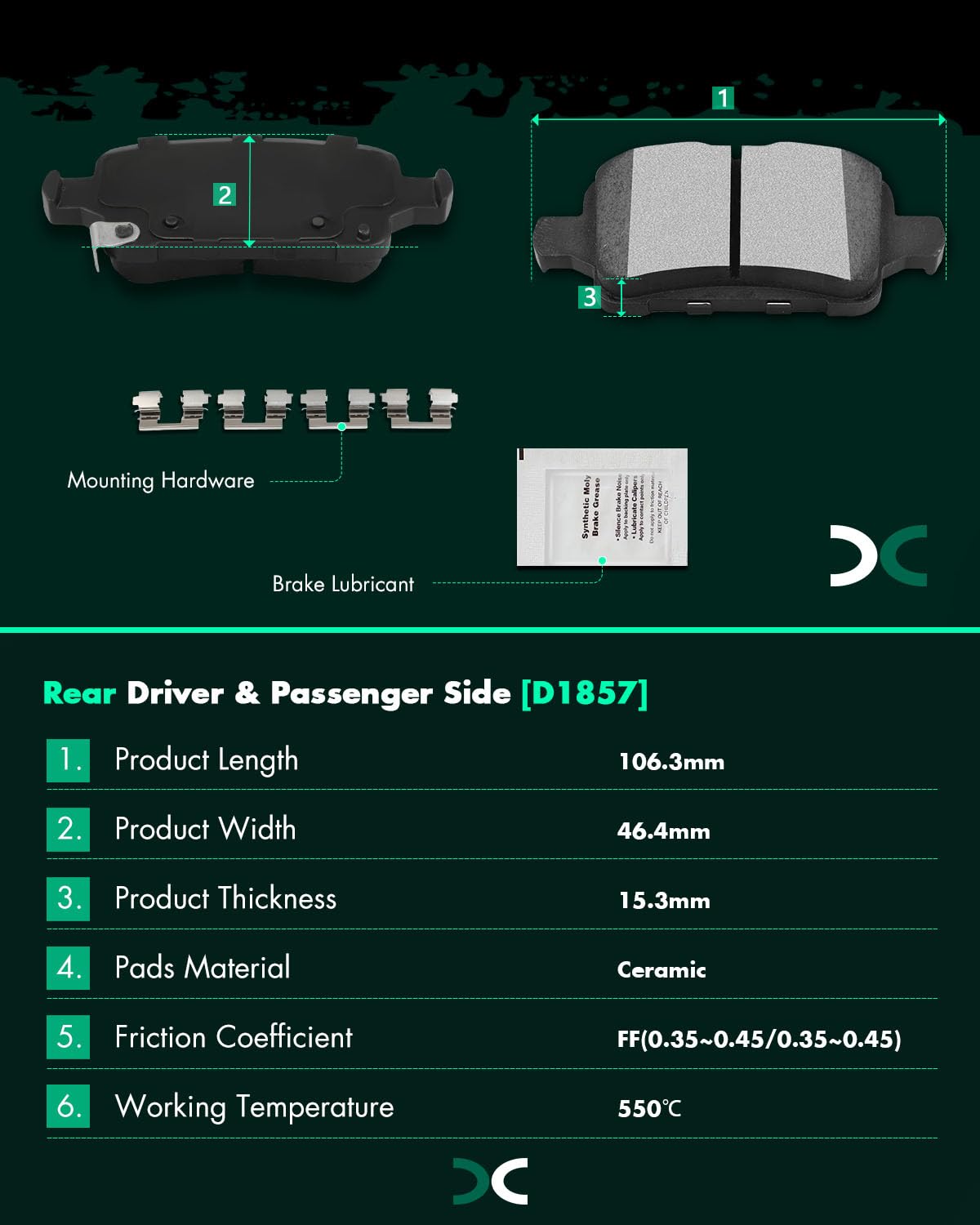 Descrição do Produto: SCITOO D1857 Conjunto de Pastilhas de Freio Cerâmicas Traseiras com Hardware para Substituição