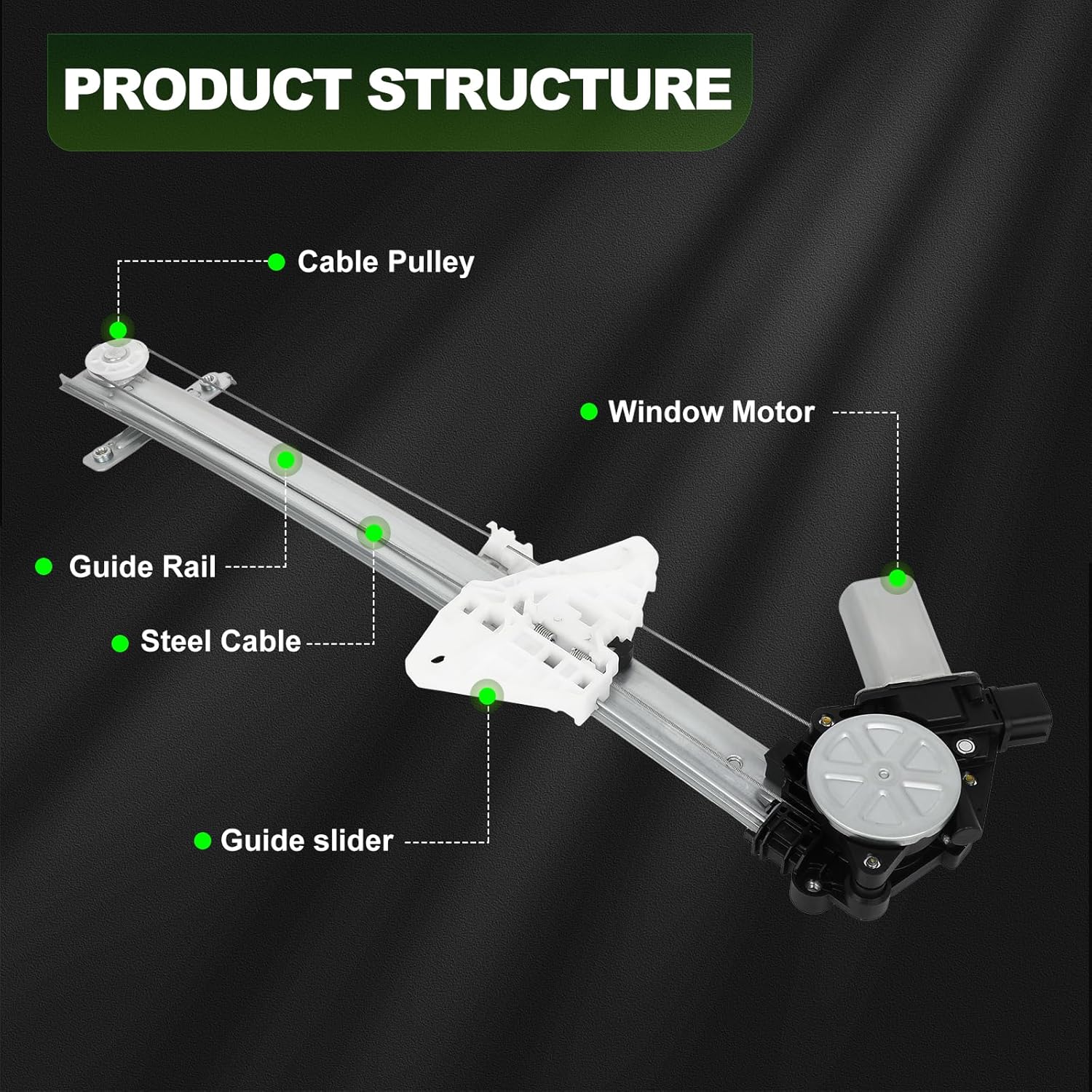 - ASPECTO DE QUALIDADE: Este elevador de janela foi avaliado milhares de vezes em portas de carros reais para verificar sua durabilidade sob cargas cíclicas, operação de elevação suave e durabilidade a longo prazo.