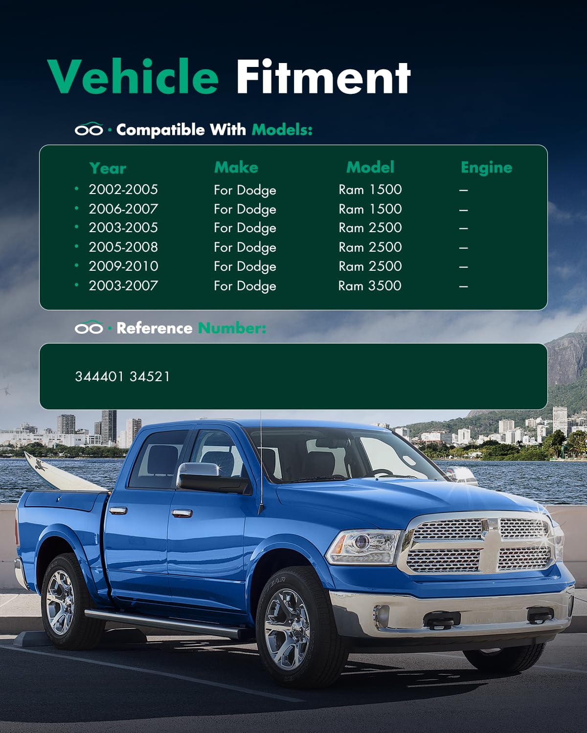 – Compatibilidade: Projetado especificamente para Dodge Ram 1500 (2002-2007), Ram 2500 (2003-2010) e Ram 3500 (2003-2007).