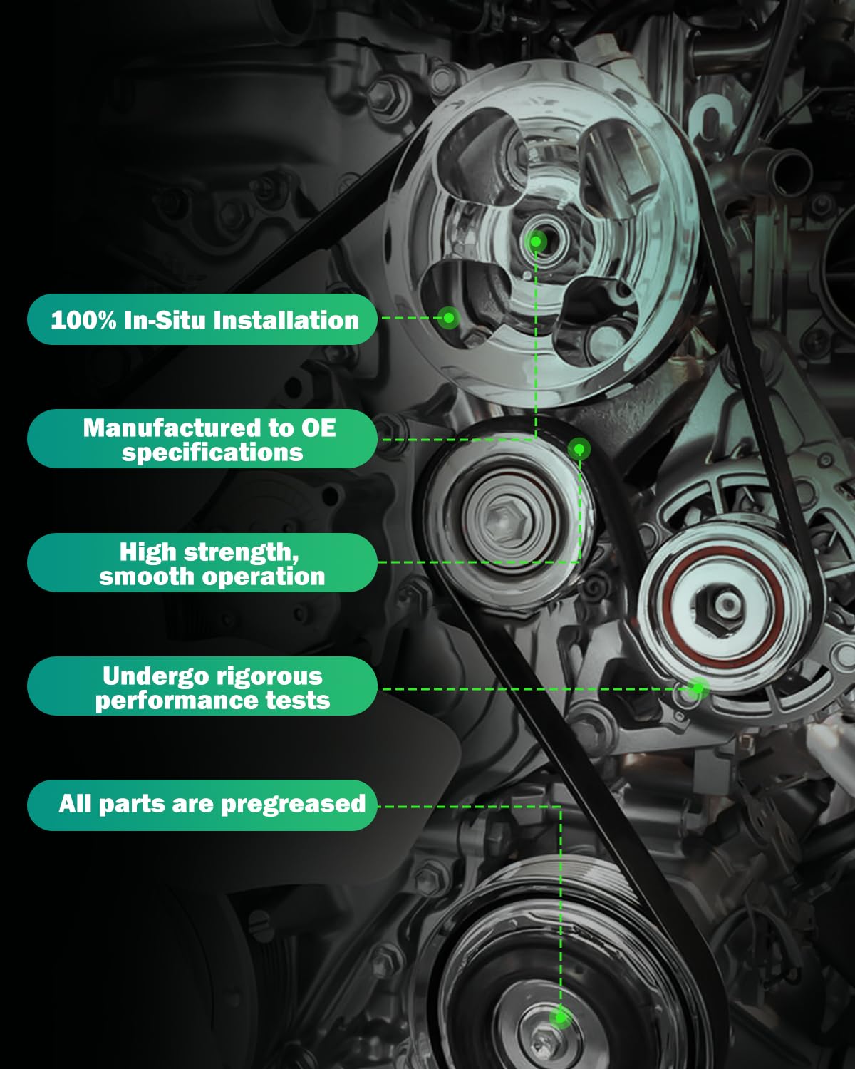 O conjunto de correia dentada utiliza tecnologia avançada para se adaptar a uma variedade de motores, garantindo um ajuste preciso e um tempo de admissão e escape exato para o seu veículo.