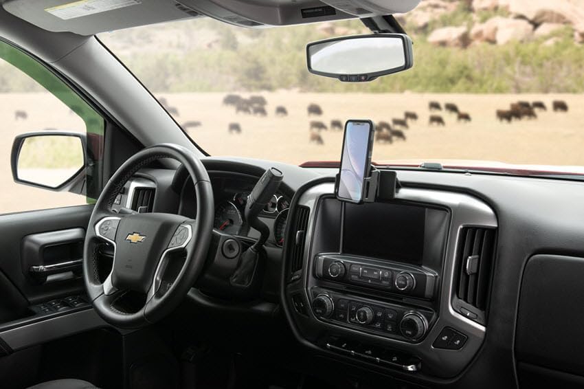 • Nosso suporte de montagem específico para veículos assegura um encaixe seguro e preciso no seu GMC Sierra 1500. NOTA: O suporte para telefone é vendido separadamente.