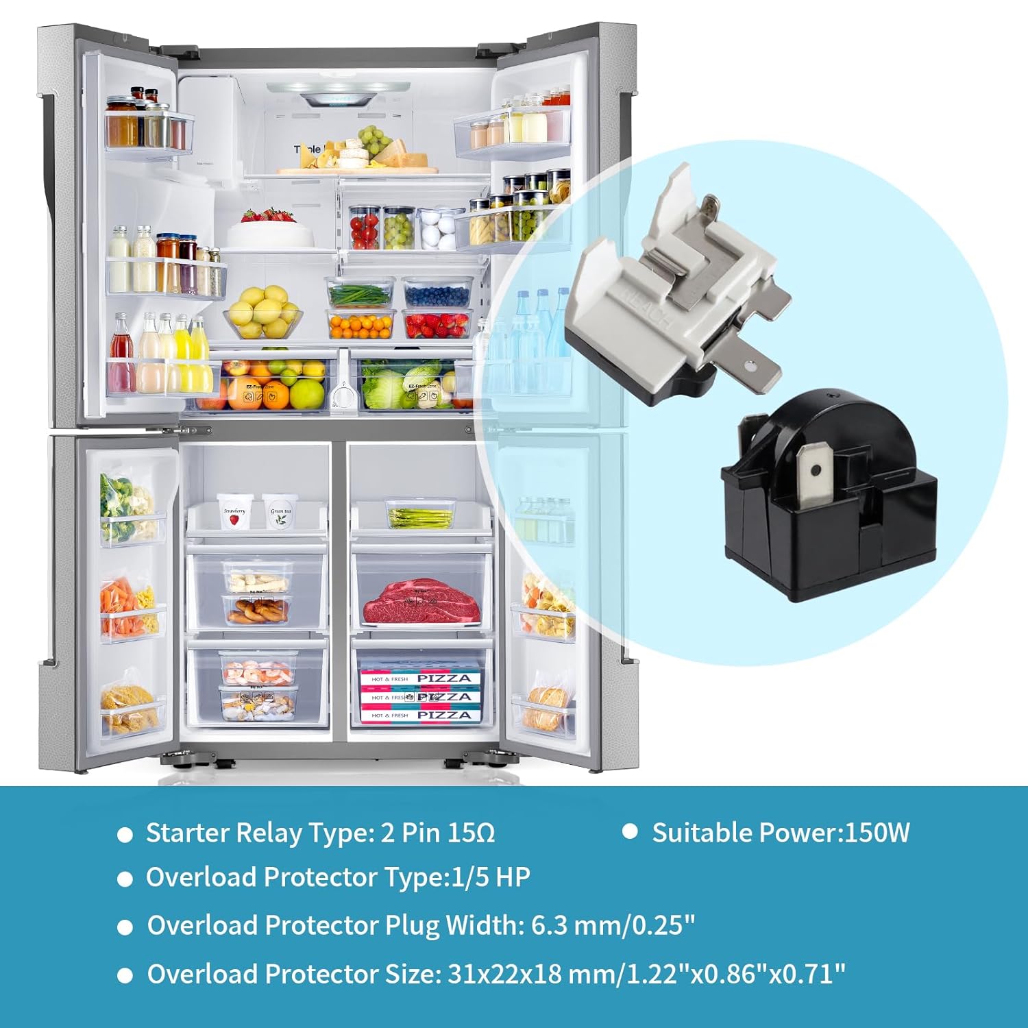 - SIZE: Tipo de Relé de Partida: 2 Pinos 15Ω; Tipo de Protetor contra Sobrecarga: 1/5 HP; Potência Adequada: 150W; Tamanho do Protetor contra Sobrecarga: 31x22x18 mm/1.22″x0.86″x0.71″; Largura do Plugue do Protetor contra Sobrecarga: 6.3 mm/0.25″