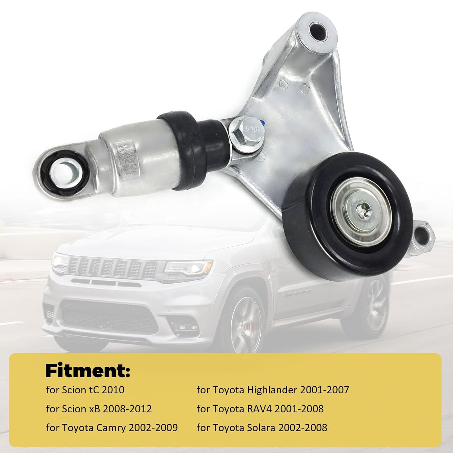 O tensionador de correia serpentina com polia 419-022 é uma peça essencial para garantir o funcionamento eficiente de diversos modelos de veículos, incluindo o Scion tC 2010, Scion xB 2008-2012, Toyota Camry 2002-2009, Toyota Highlander 2001-2007, Toyota RAV4 2001-2008 e Toyota Solara 2002-2008. Este componente é projetado para manter a tensão adequada da correia serpentina, evitando desgastes prematuros e garantindo que todos os acessórios do motor funcionem de maneira otimizada.
