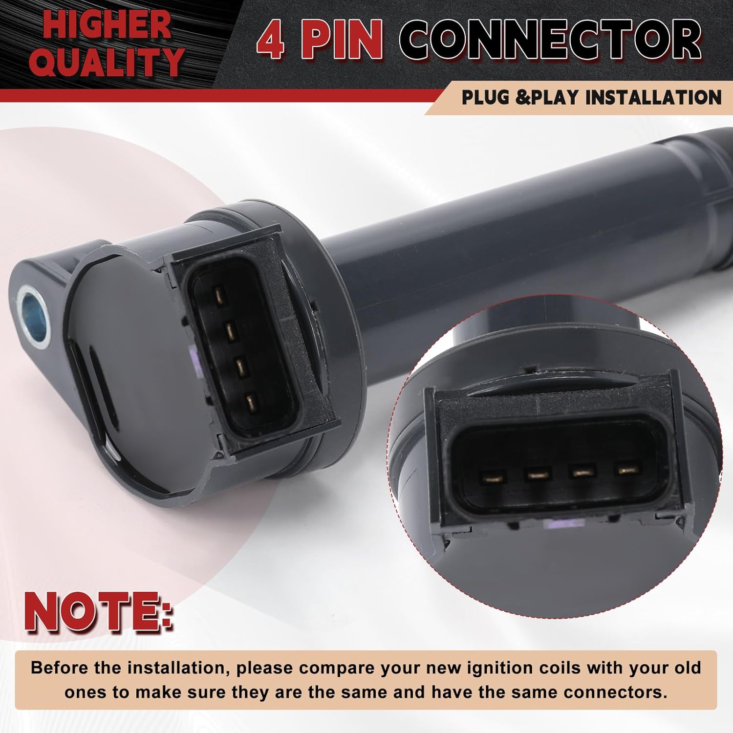 Conjunto de 4 Bobinas de Ignição e Velas de Ignição compatíveis com Toyota RAV4, Camry 2.5L, Highlander, Venza e Lexus ES300h 2.7L, modelo UF487. Este kit oferece desempenho otimizado, melhorando a eficiência do motor e garantindo partidas mais rápidas. As bobinas são projetadas para alta durabilidade e resistência a altas temperaturas, reduzindo a necessidade de substituições frequentes. Ideal para quem busca qualidade e confiabilidade, proporcionando uma condução suave e econômica.