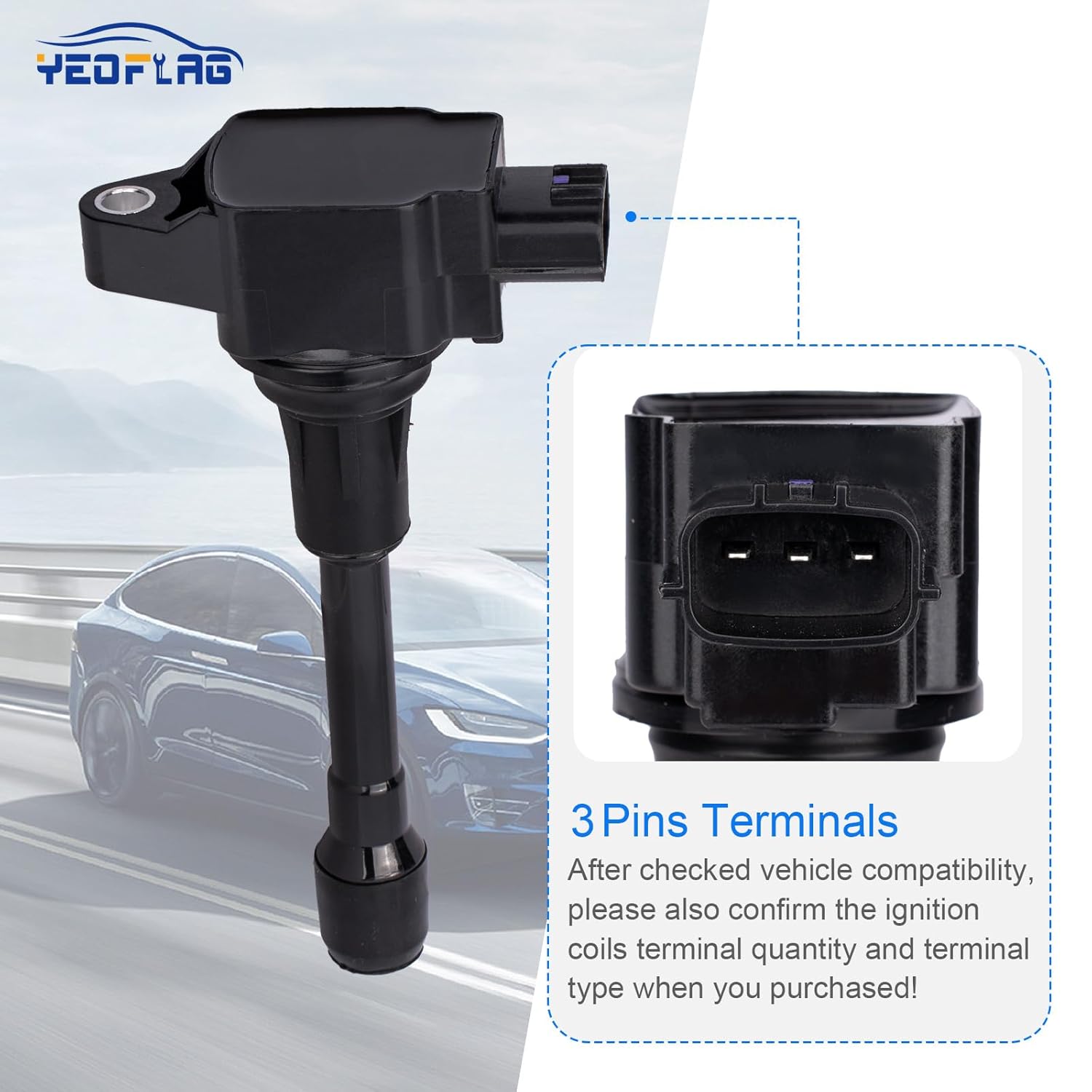As bobinas de ignição Yeoflagtrade são compatíveis com os números de peça UF549, CUF549, 1788369, 22448ED000, 22448JA00A, 22448JA00C, DQ50226, 2448JA00C, 224481KT1A, B184UF549, 5C1753, GN10241, C1696, 6734028, IGC0002, 3355010101014, 3305504, UF519, 531642, UF719, 22448JA10A, 22448JA10C, AIC2408B, 22448EN200.
