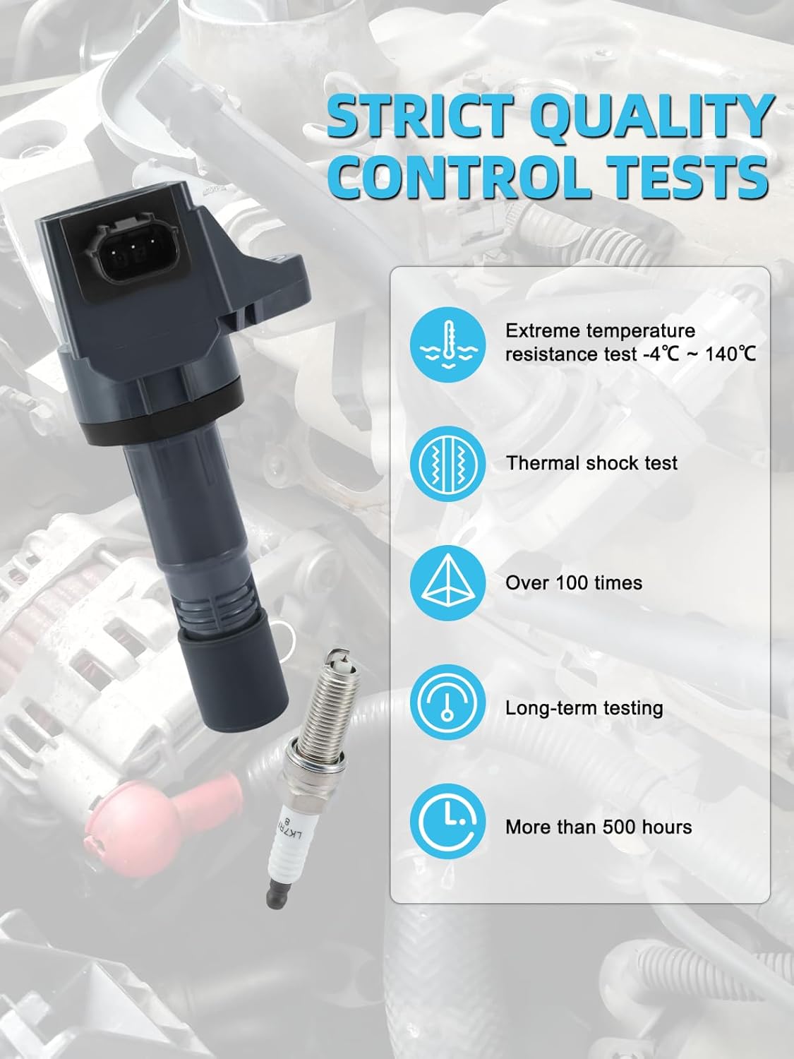 As bobinas de ignição UF672 são fabricadas com fios de cobre de alta condutividade e epóxi de alto desempenho dielétrico, garantindo conexões precisas e resistentes à corrosão. Isso não apenas assegura uma excelente conectividade, mas também contribui para uma vida útil prolongada do produto. Cada unidade é rigorosamente testada para corresponder ou superar as especificações originais de equipamentos (OE) em termos de saída de energia de ignição, impedância e durabilidade. Fabricadas em instalações certificadas pela TS16949, as bobinas passam por testes de funcionalidade e vazamento, garantindo 100% de confiabilidade.