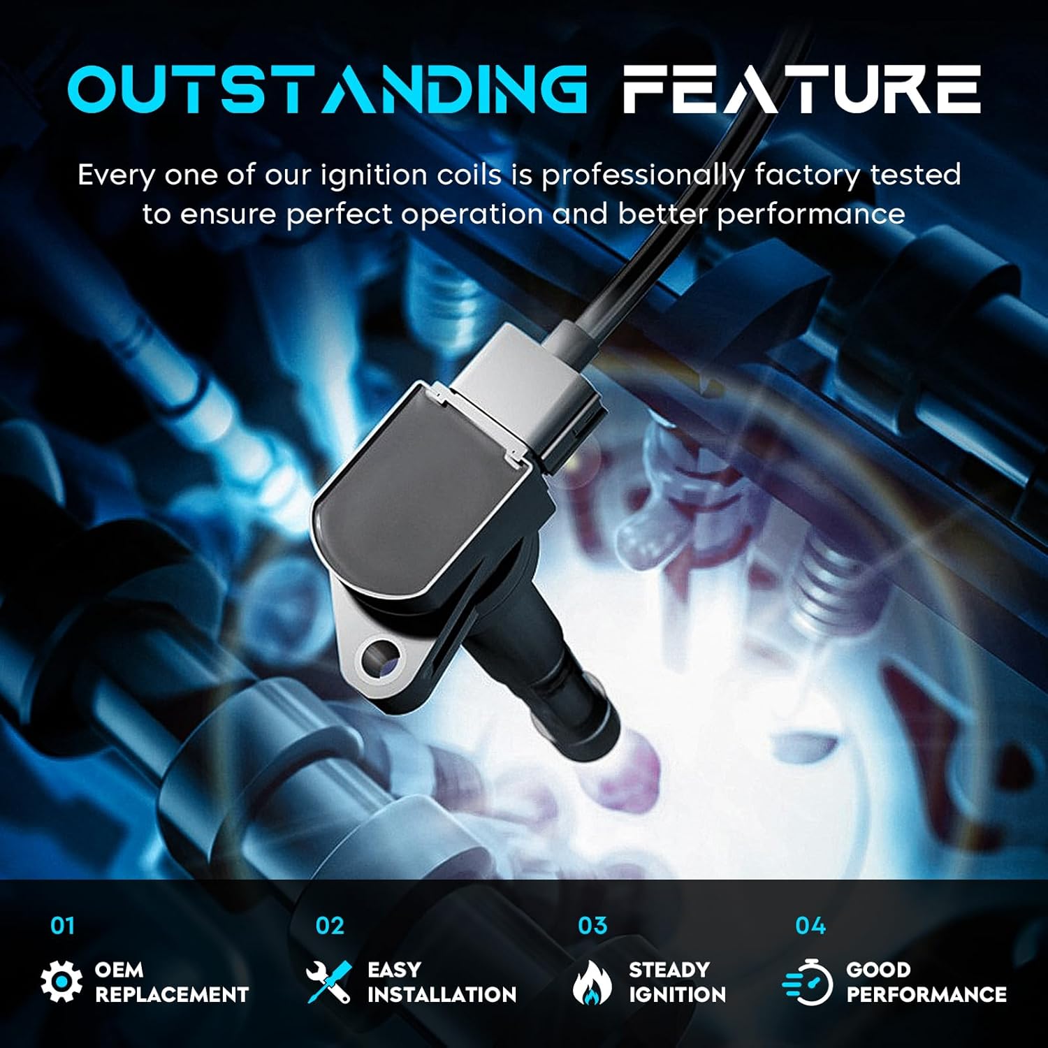 - Instalação Fácil: Cada bobina atende às especificações padrão de fábrica e é rápida e fácil de instalar, resolvendo problemas como dificuldades na partida do motor, falhas de ignição, engasgos ou paradas e baixa economia de combustível.