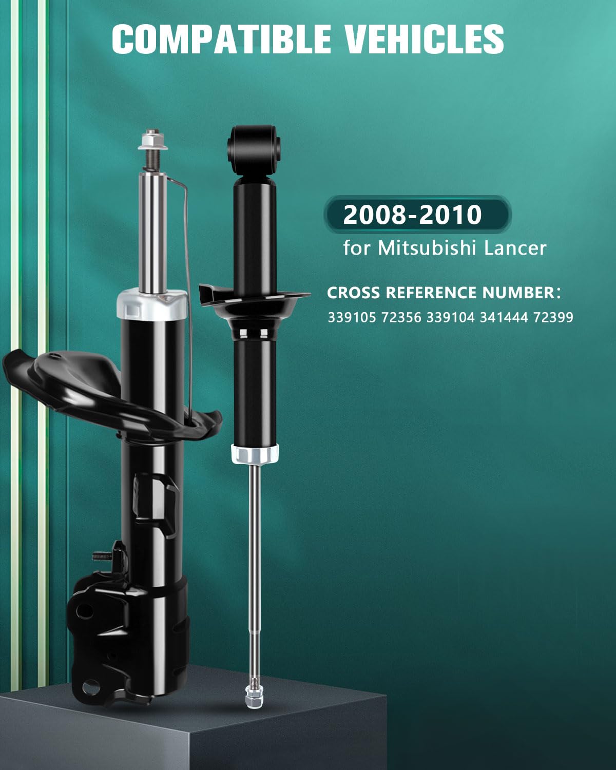 2 avaliações para Amortecedores para Mitsubishi Lancer 2008-2010 – Kit com 4 Peças AUTOMUTO (Frente e Traseira) – Compatível com 339105, 72356, 339104, 72355, 341444, 72399 – Amortecedores a Gás