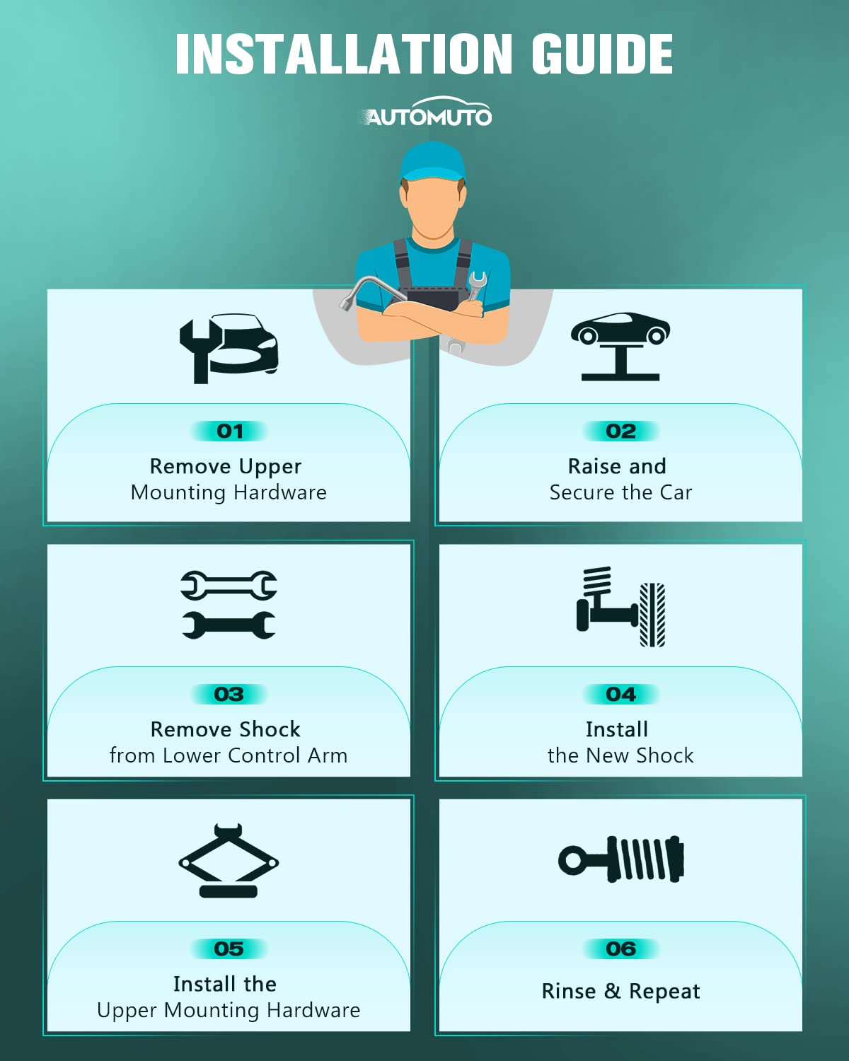 Para instalar os amortecedores AUTOMUTO, comece levantando o veículo e removendo as rodas. Em seguida, desparafuse os amortecedores antigos, tomando cuidado para não danificar as peças adjacentes. Instale os novos amortecedores AUTOMUTO no lugar dos antigos, assegurando que todos os parafusos estejam bem apertados. Após a instalação, reinstale as rodas e abaixe o veículo. É recomendável realizar um teste de condução para garantir que os amortecedores estejam funcionando corretamente.