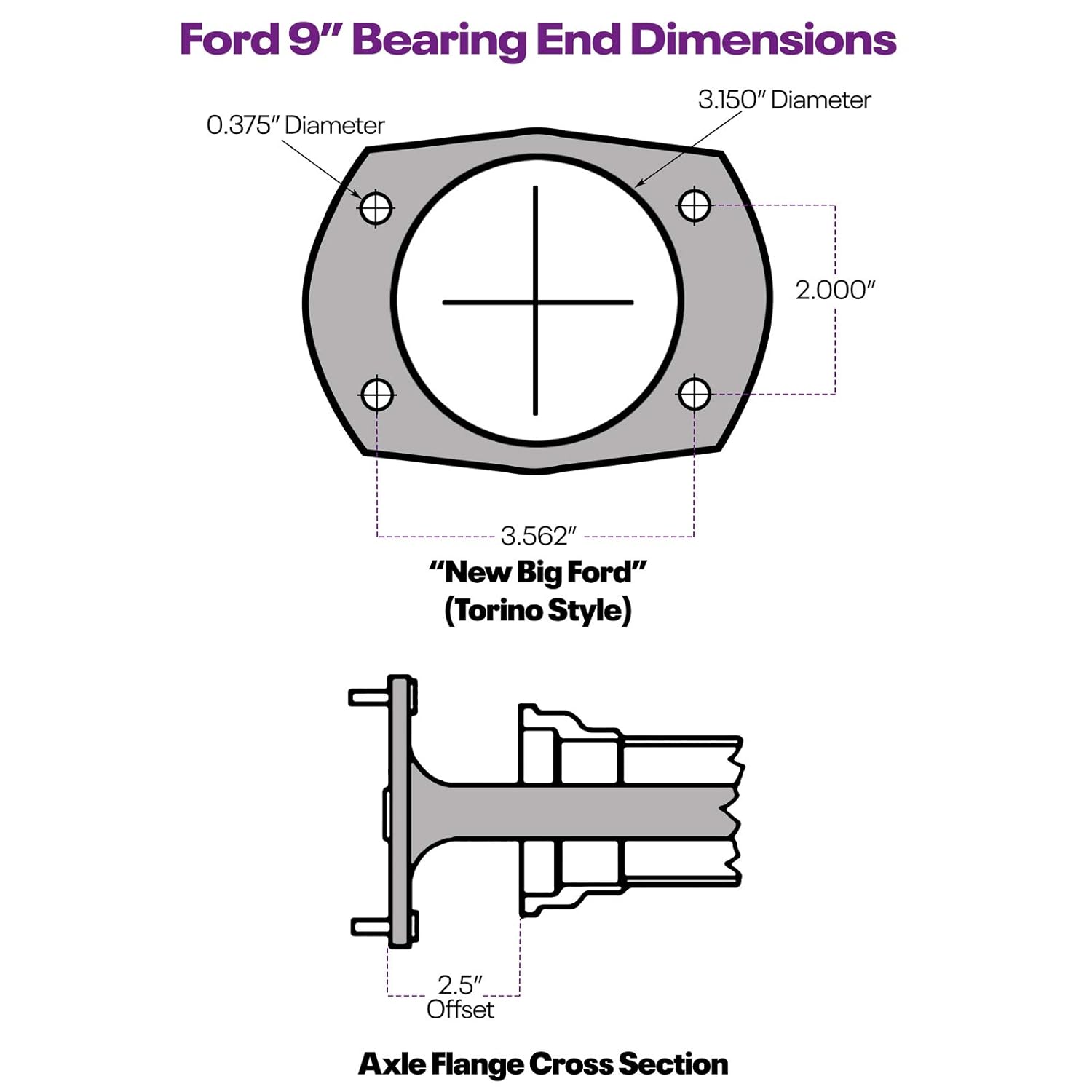 – Compatibilidade: Projetado para carcaças de eixo Ford 9 polegadas com flange de rolamento “Torino”.