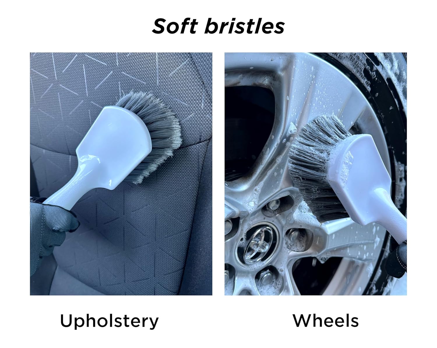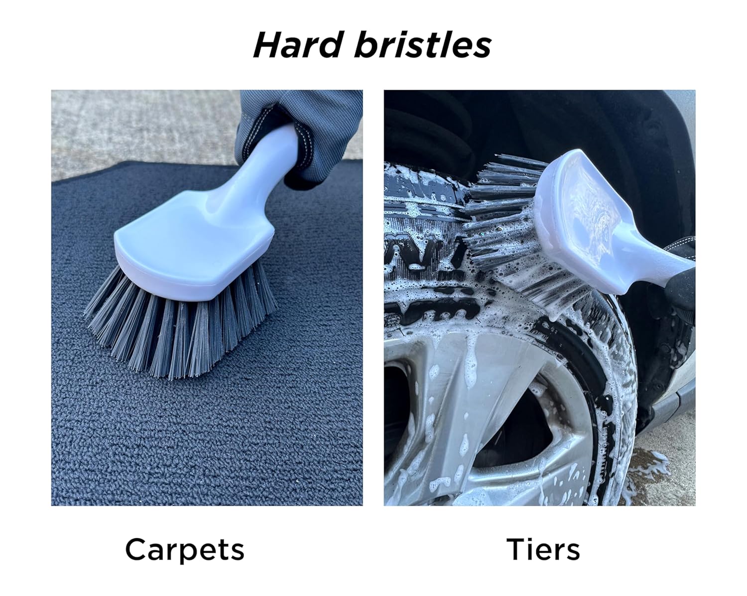 Having both options of brush is helpful when cleaning your wheels and tires. A simple product, yet very useful for car care.