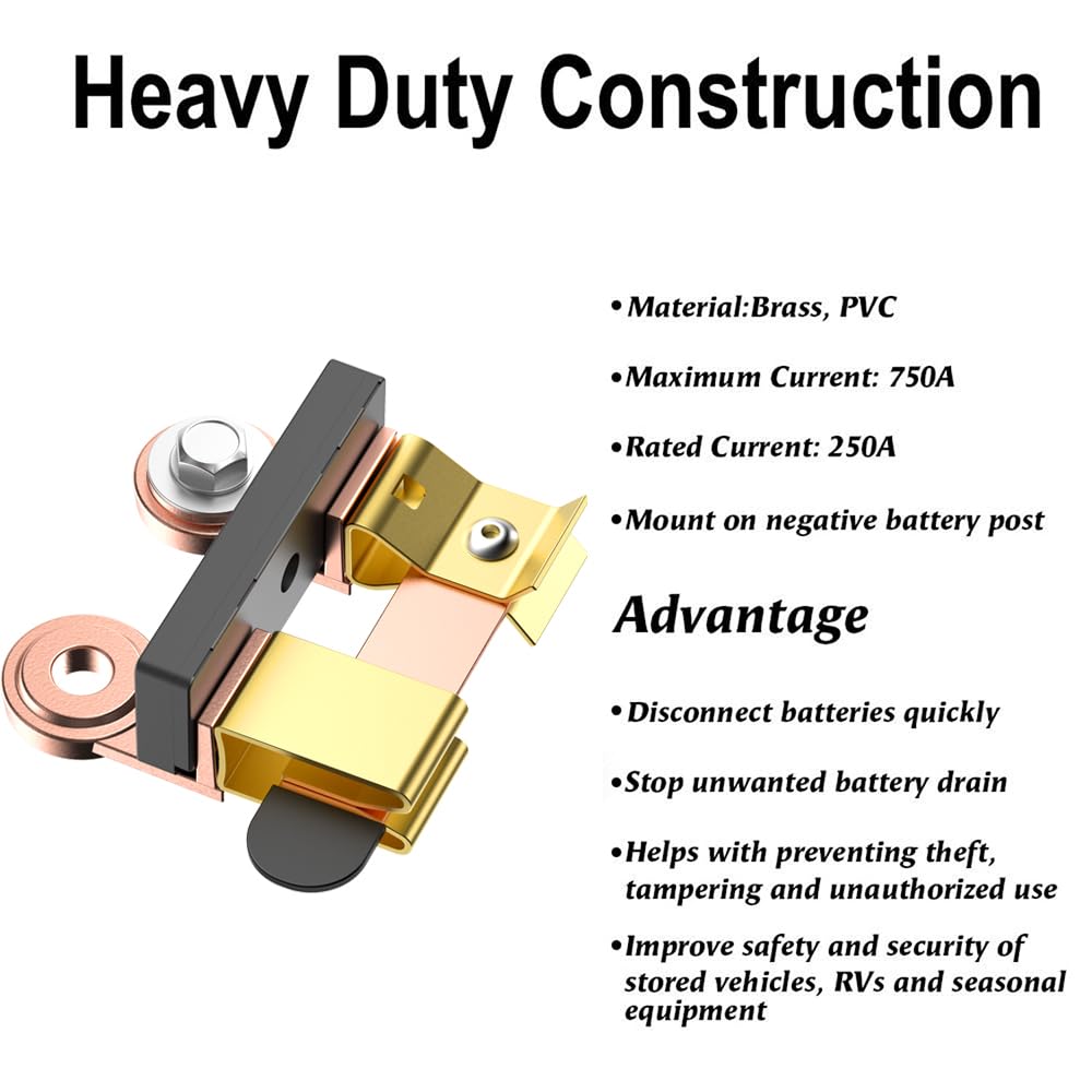O Side Post Knife Blade Master Switch é a solução ideal para quem busca segurança e eficiência no gerenciamento da energia elétrica de veículos, barcos e equipamentos. Este interruptor de desconexão de bateria é projetado especificamente para terminais de bateria de pólo lateral, sendo compatível apenas com o pólo negativo. Com uma capacidade máxima de corrente de 750A e uma corrente nominal de 250A, ele é perfeito para uma ampla gama de aplicações, incluindo carros, caminhões, ônibus, RVs, barcos e trailers que operam em 6V, 12V e 24V.