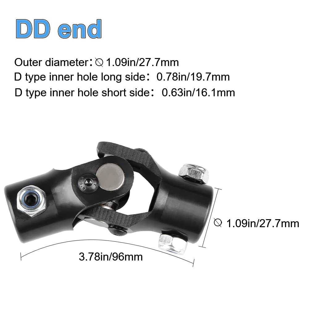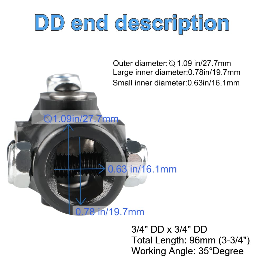 Descrição do Produto: Eixo de Direção Universal U Joint 3/4″ DD x 3/4″ DD, 96mm (3-3/4″) com Ângulo de Trabalho de 35°