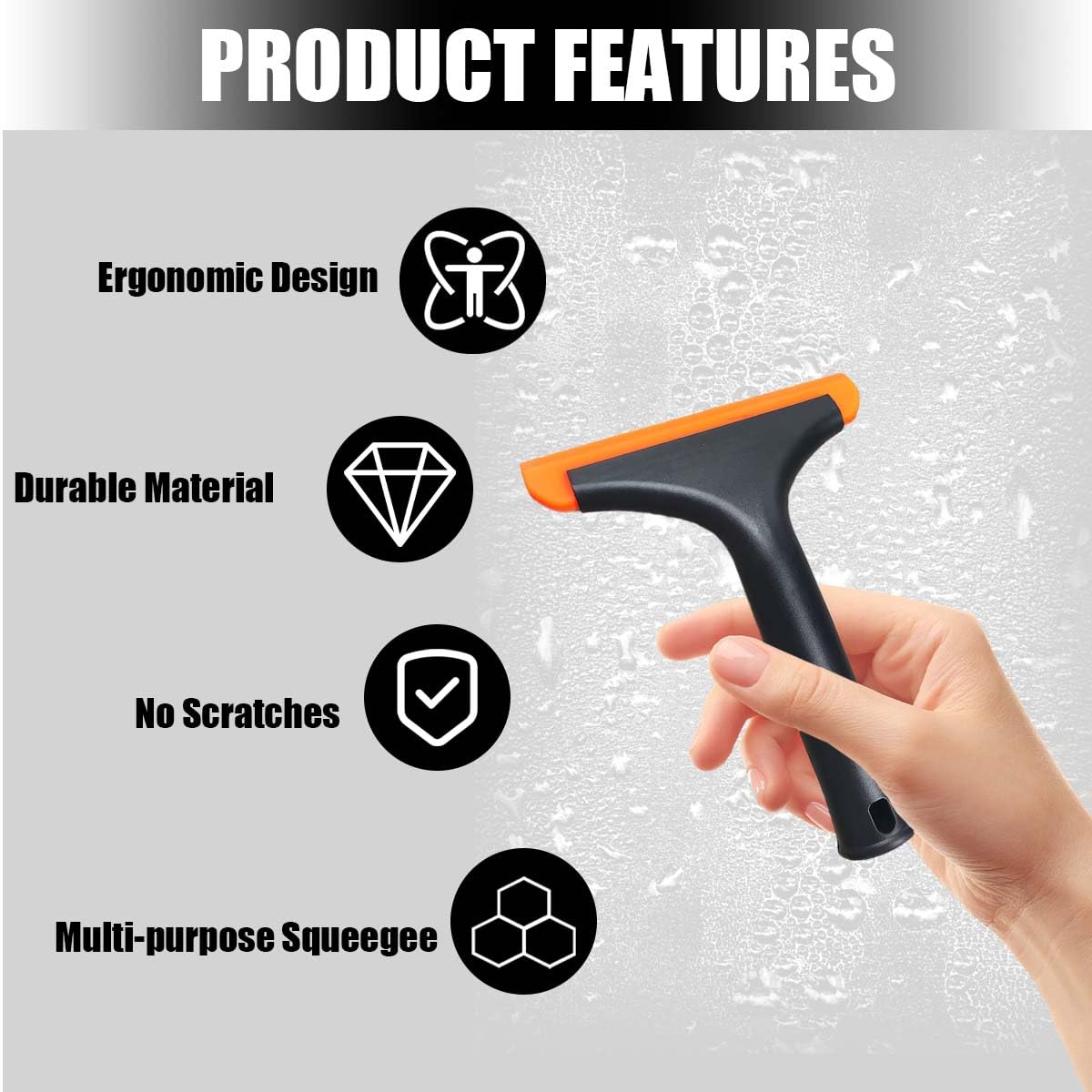 Aplicação Ampla: Este raspador não se limita apenas às janelas de carros; ele é igualmente eficaz em espelhos, portas de chuveiro, azulejos, espelhos embaçados, bancadas de banheiro, pias de cozinha, pátios, paredes e outras superfícies em casa.