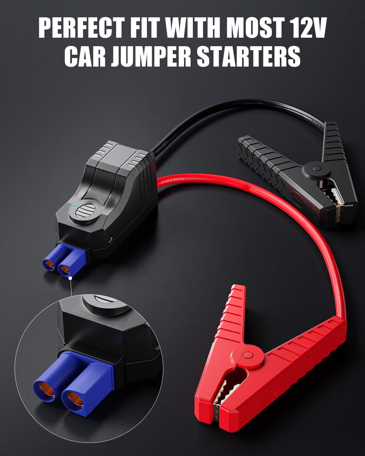 – Compatibilidade: Ideal para jump starters portáteis de 12V, adequado para a maioria dos veículos.