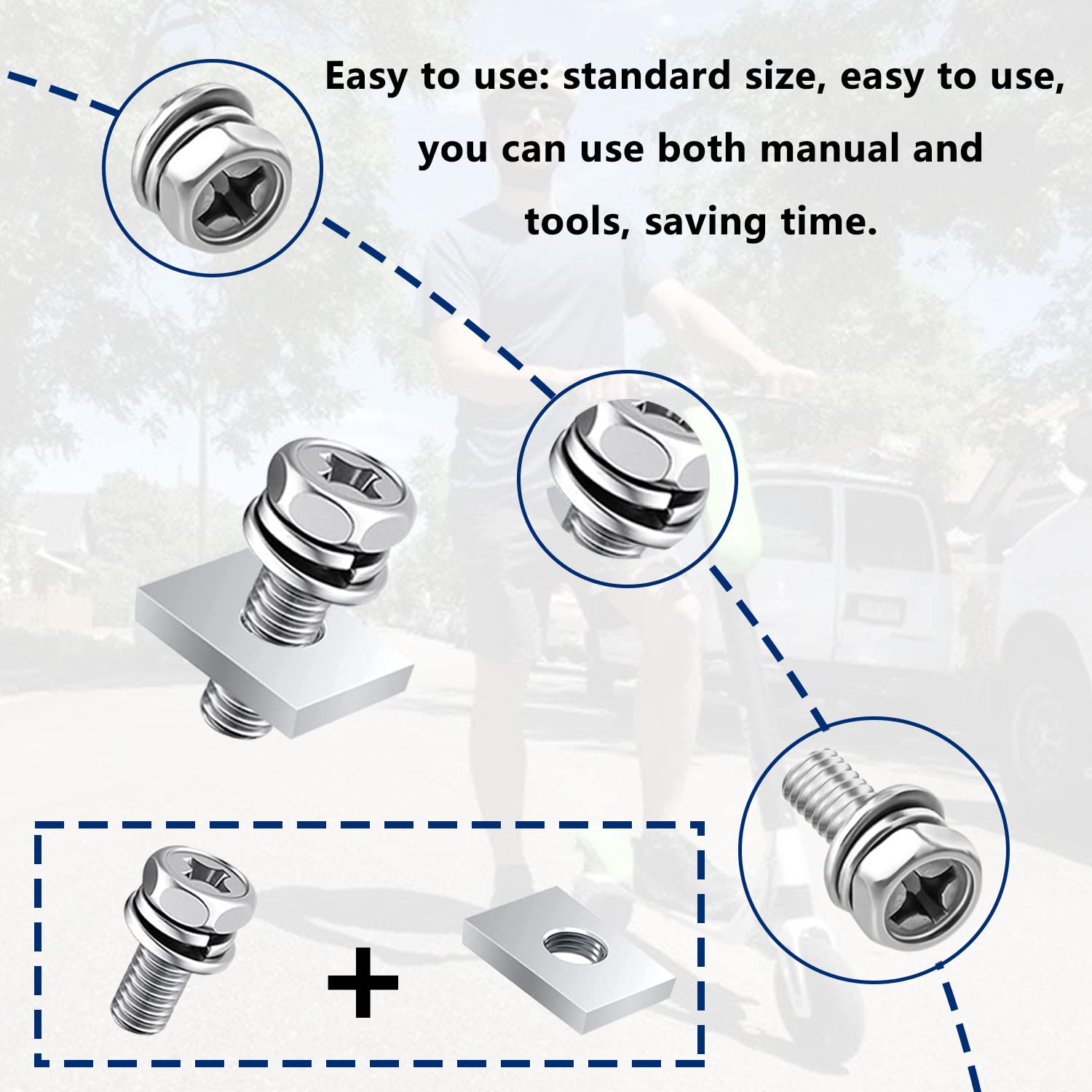 Tamanhos: O kit inclui porcas com dimensões de 11x8x4mm (0.43×0.31×0.16in) e parafusos nas medidas de 6x16mm (0.24×0.63in), 6x10mm (0.24×0.39in) e 6x18mm (0.24×0.71in), garantindo que você tenha as opções necessárias para diferentes aplicações.