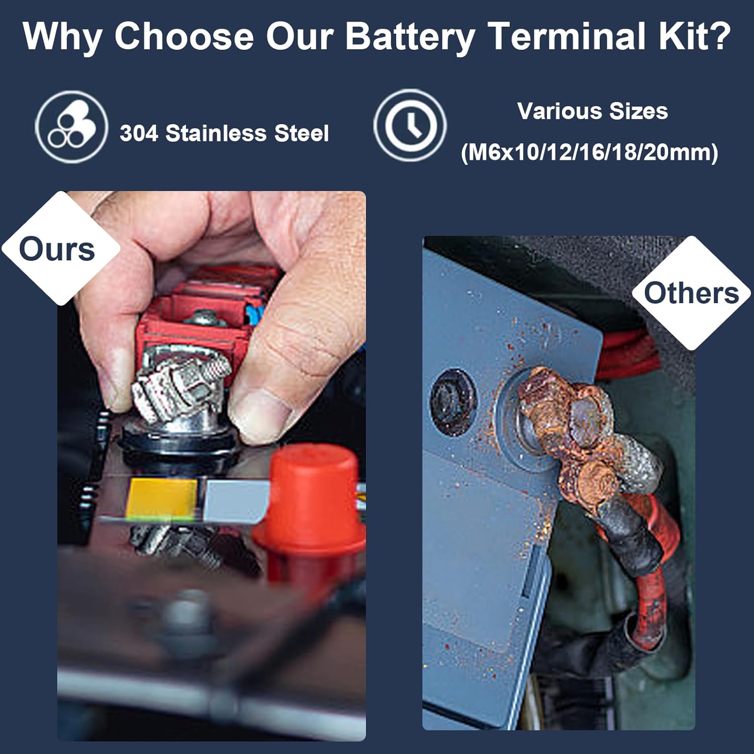 O kit de porcas e parafusos para terminais de bateria de motocicleta smseace contém 37 peças em aço inoxidável, incluindo porcas quadradas e parafusos de tamanhos M6x10/16/18mm. Ideal para projetos DIY, motocicletas e ATVs, oferece durabilidade e resistência à corrosão. As peças são fáceis de instalar e garantem conexões seguras, proporcionando um desempenho confiável e prolongando a vida útil da bateria. Perfeito para quem busca qualidade e praticidade em reparos e manutenções.