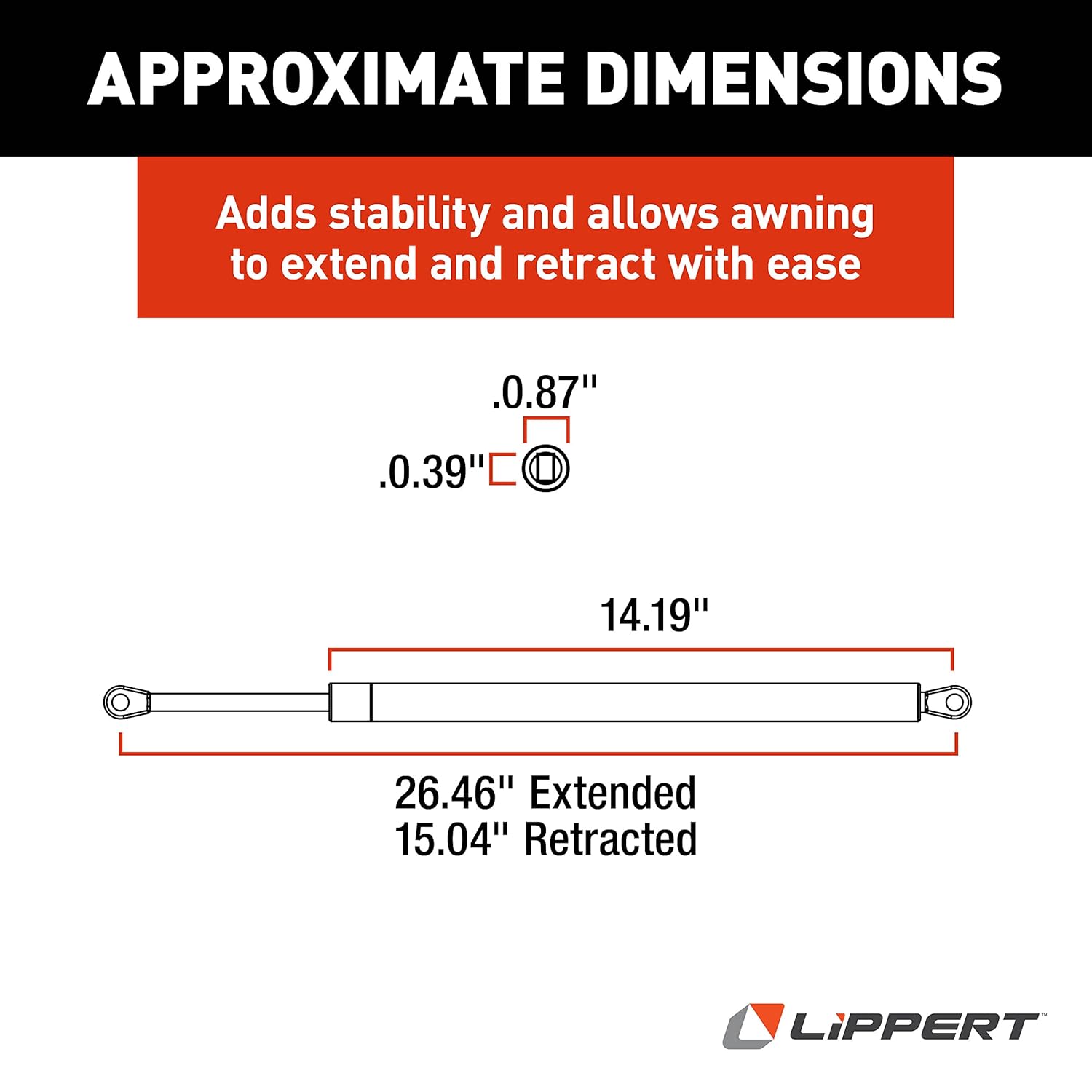 Descrição do Produto: Solera 280343 Gas Strut – 26″, 124 lb para Braços de Toldos Curtos e Planos, Preto