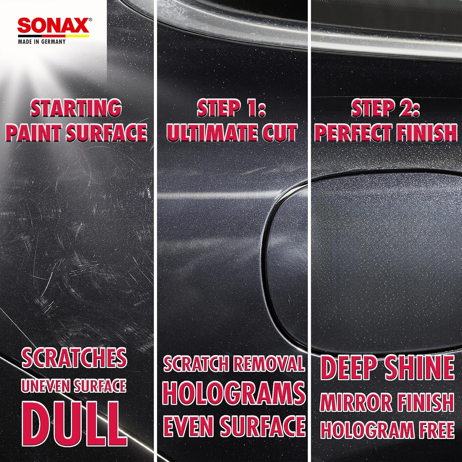 Resposta: O SONAX Ultimate Cut se destaca por sua formulação à base de água, que minimiza a poeira e proporciona um acabamento superior, além de ser eficaz na remoção de arranhões profundos.
