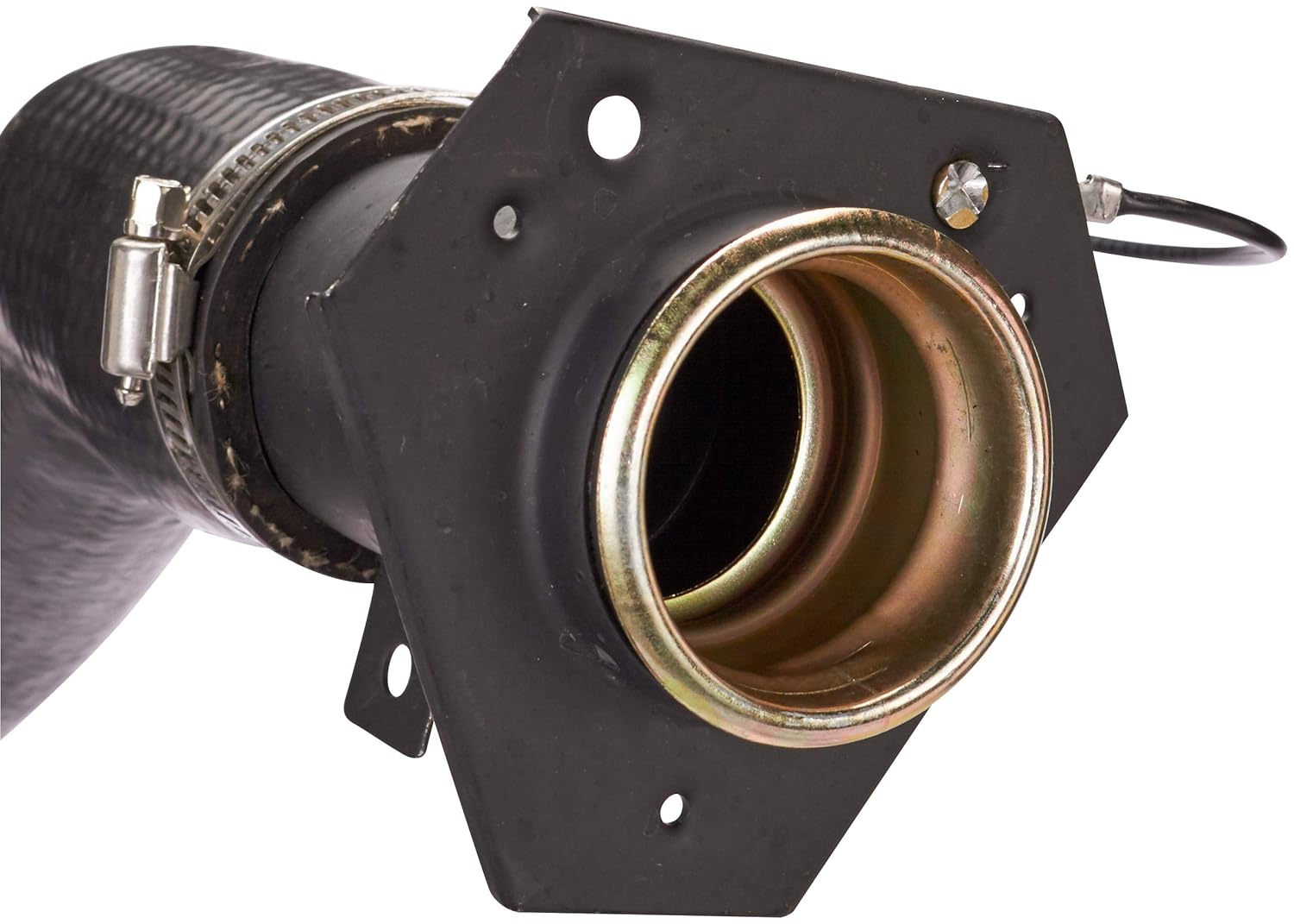 I left off the provided outer hose and reused the OEM hose. I got the internal hose down the outer hose, got the fuel filler housing mounted in the OEM hose and tightened. Don’t forget the ground strap. Everything went back together the same way it came apart, the fuel cap fit correctly and the first fill-up was a dream. The fuel flowed, the nozzle didn’t prematurely shut off, life was heaven again. Not sure why I fought this problem for 14 years but it’s fixed now and all is right with the world.