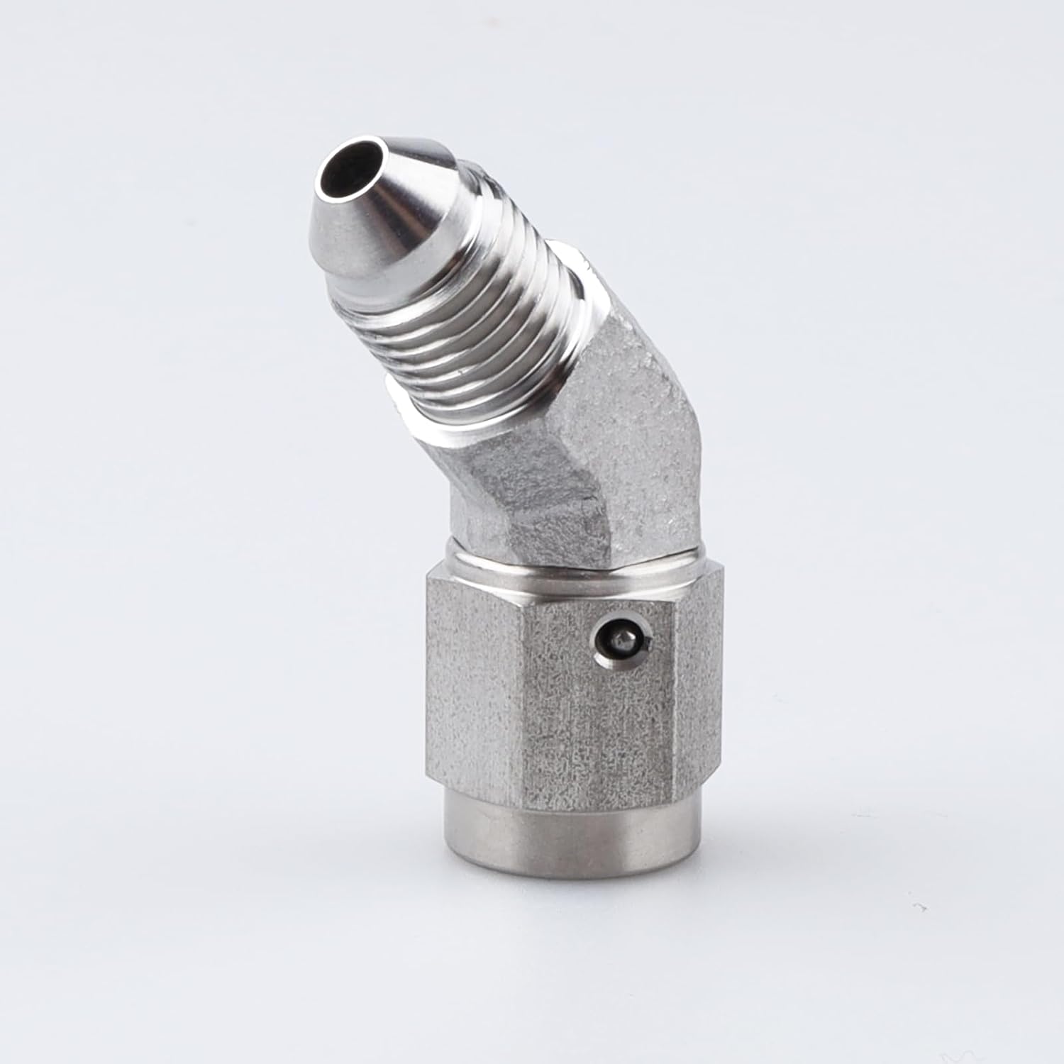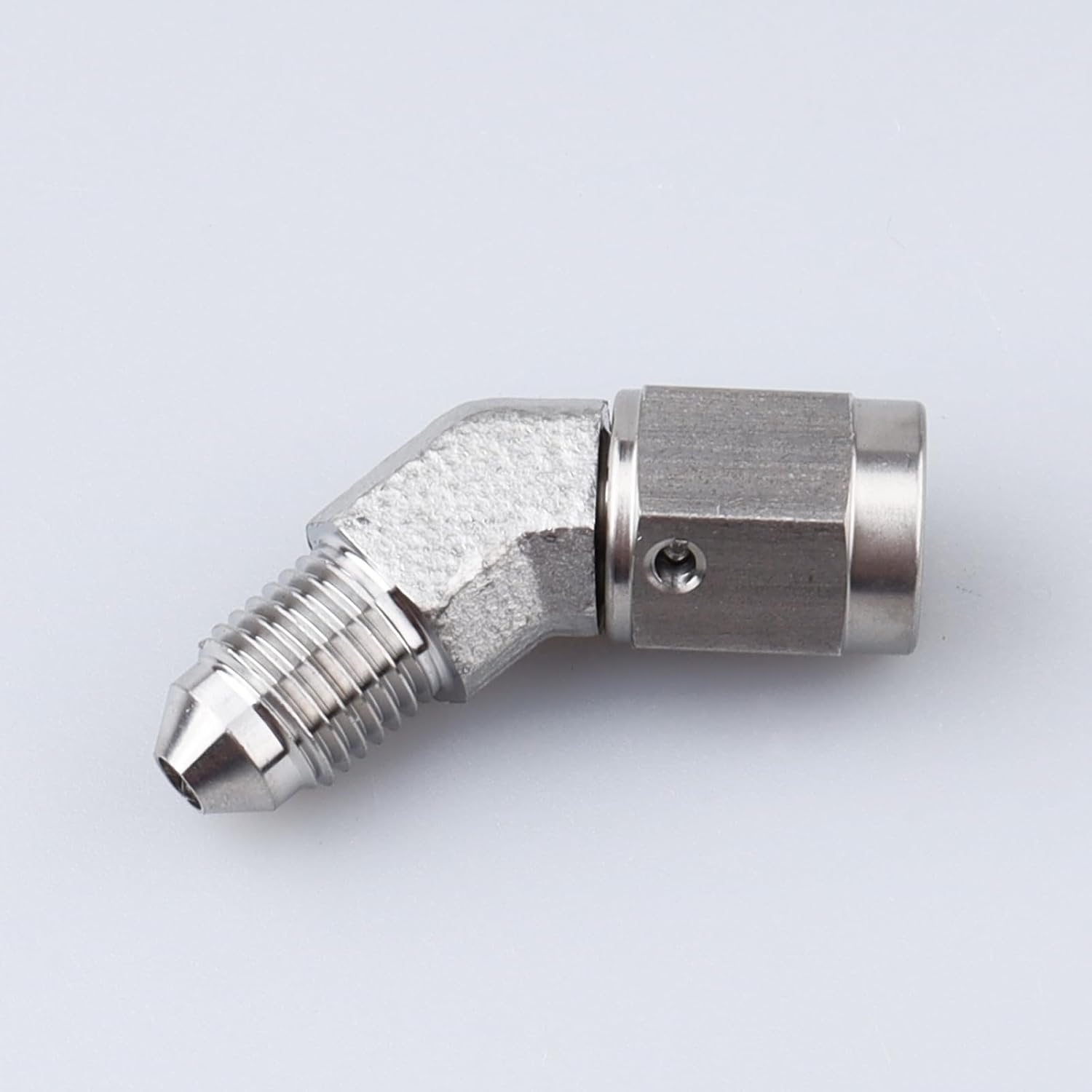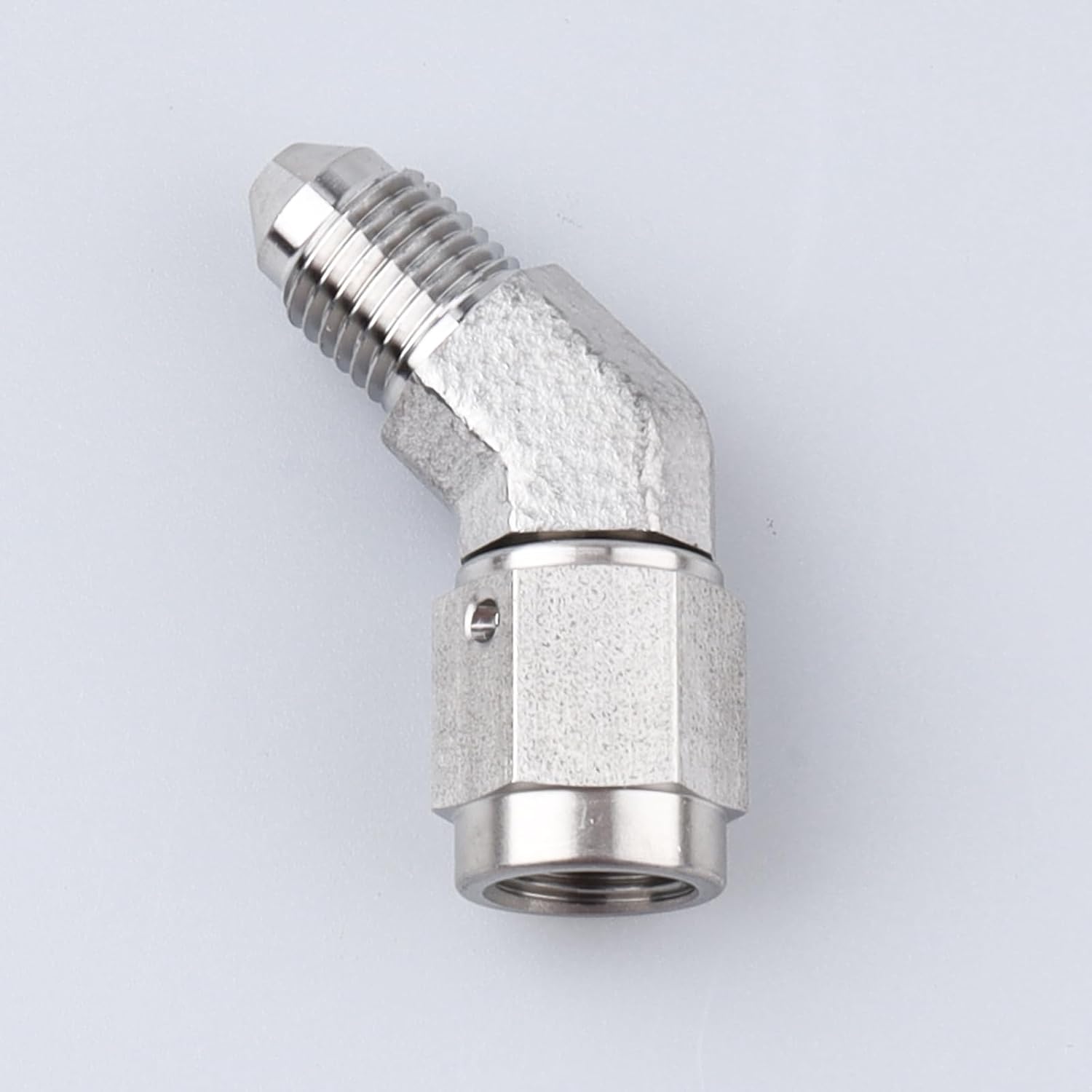 O adaptador de mangueira em ângulo de 45 graus, com rosca macho 3AN para fêmea, é uma solução inovadora e robusta para diversas aplicações automotivas e industriais. Fabricado em aço inoxidável 304, este componente não apenas garante durabilidade, mas também resistência à corrosão, tornando-o ideal para ambientes exigentes. Com a capacidade de suportar altas pressões, este adaptador é perfeito para atender a todas as suas necessidades de aplicação, seja em sistemas de combustível, óleo, fluidos de freio, gasolina sem chumbo, metanol ou água.