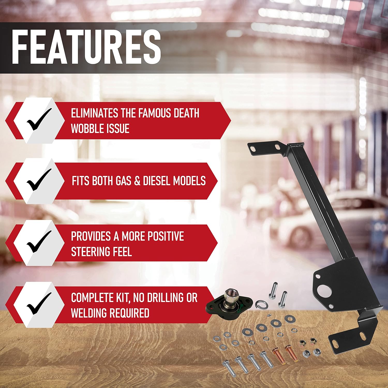 Let me start this off by saying, you do get what you pay for. I could not justify spending 200-300 dollars on an aftermarket brace setup, but I started thinking when I saw this unit at this price. After reading the reviews it seems the first rendition of this “copied” aftermarket stabilizer had an issue with alignment of the holes. The one I received had absolutely NO issues bolting up and aligning with my truck. The holes are slotted to allow for slight alignment deviations, so don’t be mislead by the bad reviews.