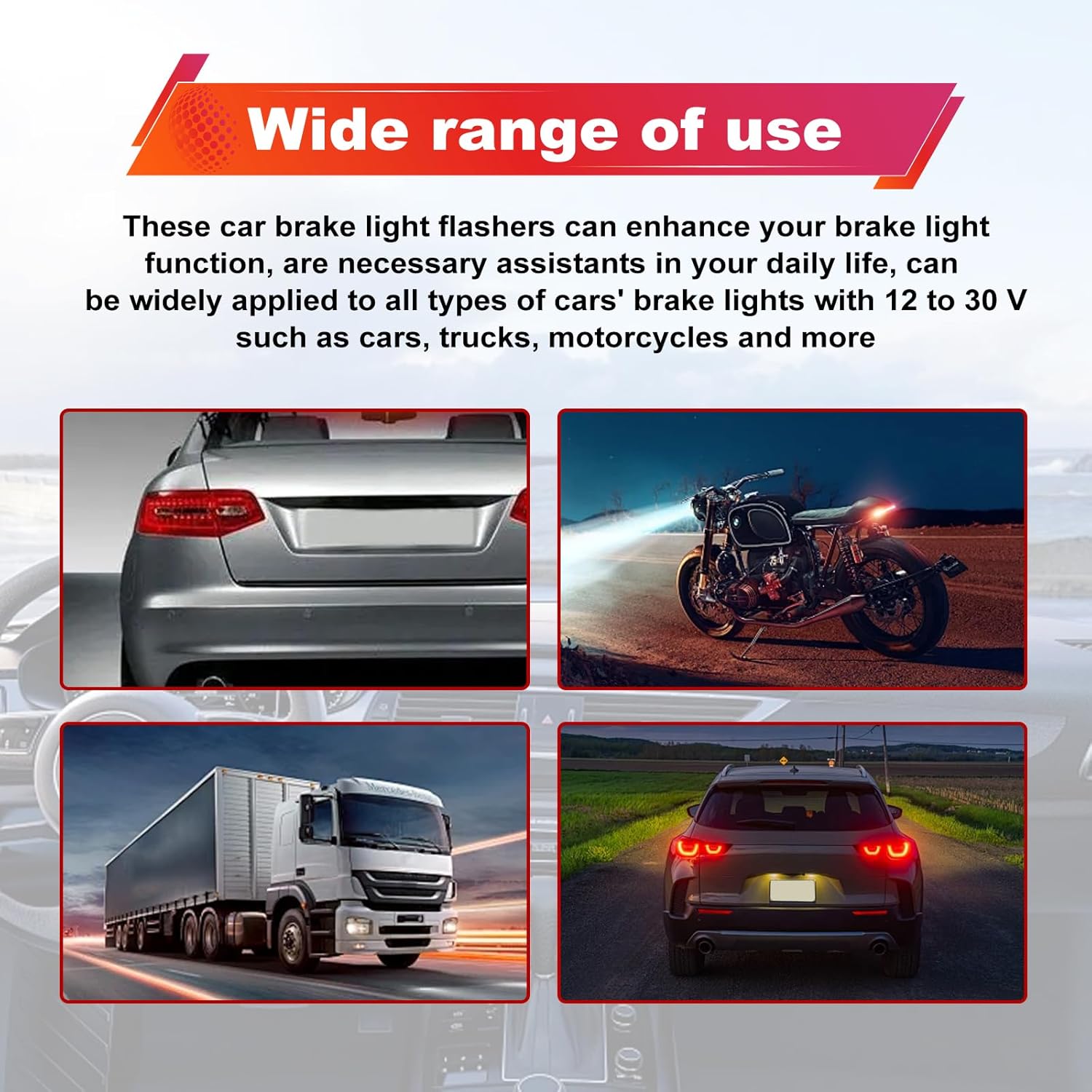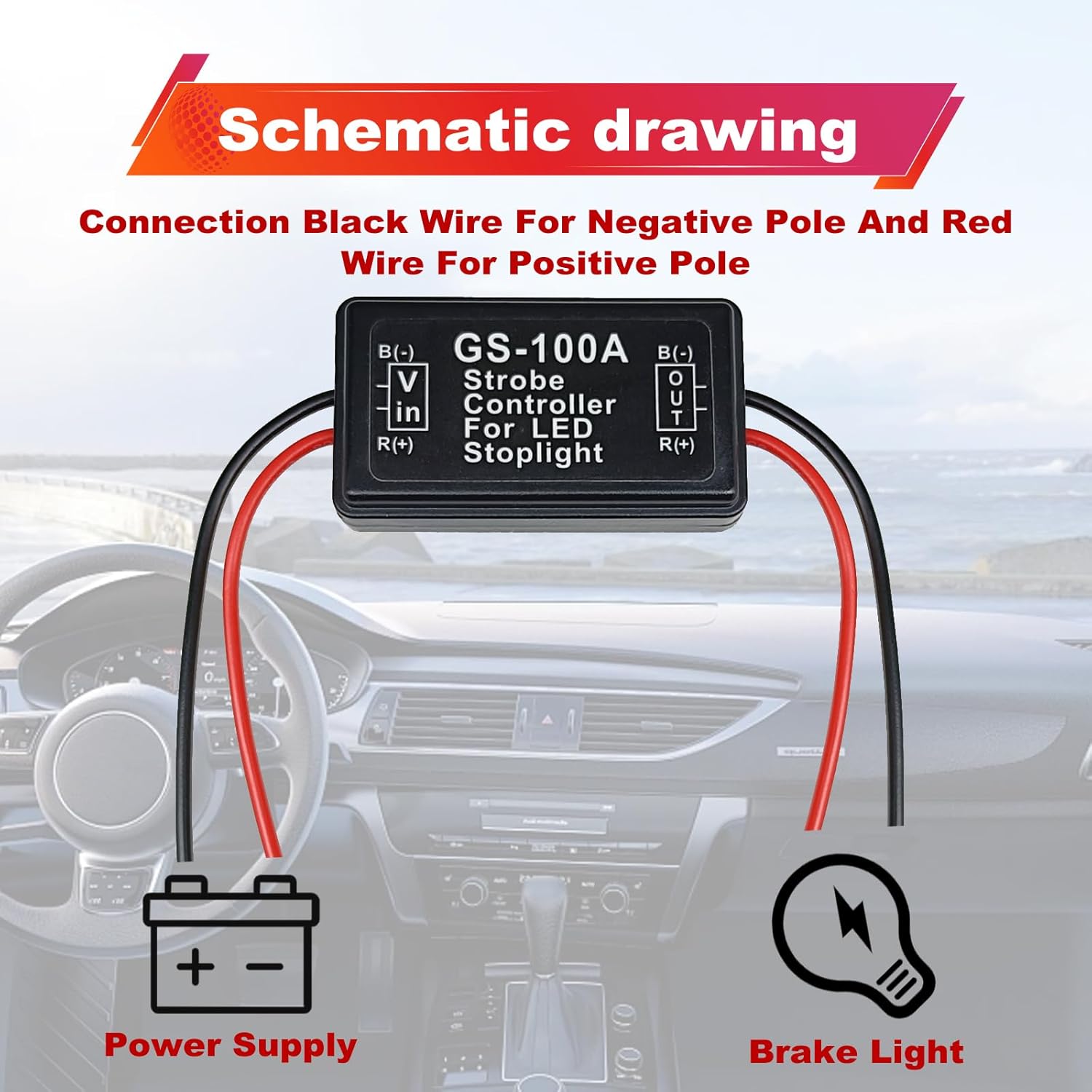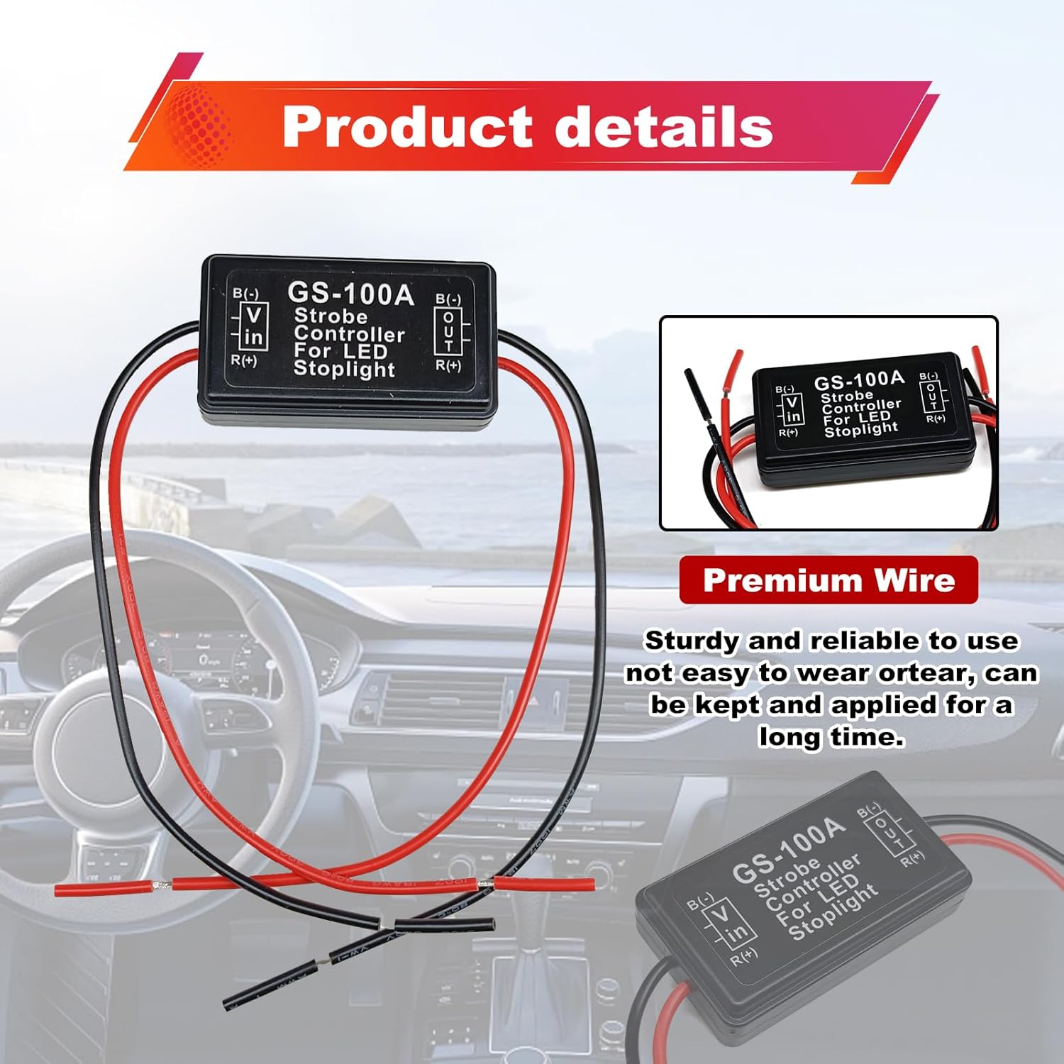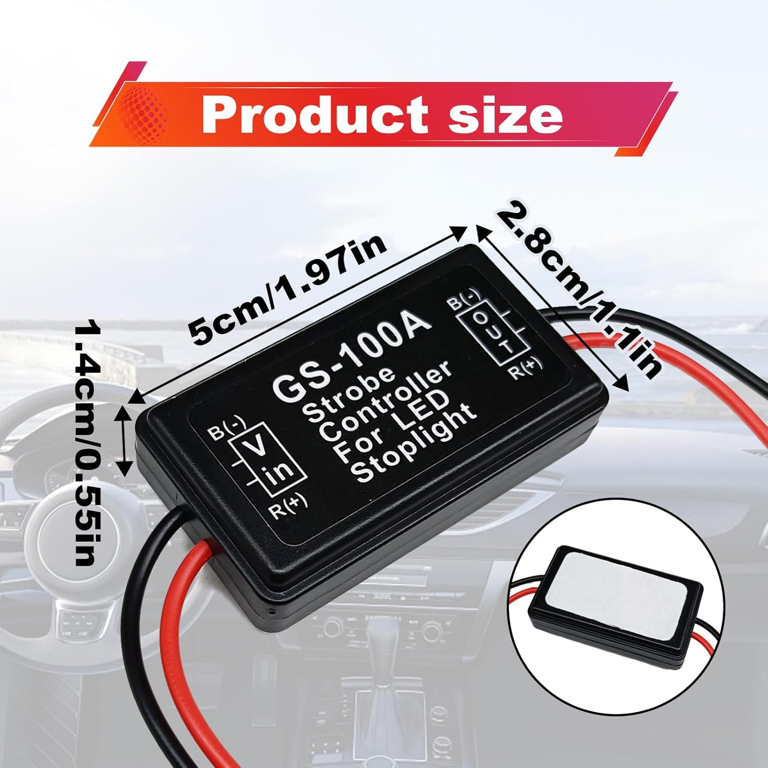 Com uma tensão de entrada classificada entre DC 12-24V e uma corrente de entrada de 2A, o Strobe Brake Light é compatível com uma ampla gama de veículos, incluindo carros, motocicletas, tanques blindados e bicicletas elétricas. Este módulo de pisca-pisca não apenas melhora a função da luz de freio, mas também proporciona um efeito visual impactante, piscando rapidamente quatro vezes, seguido por um piscar lento de quatro vezes, antes de permanecer na luz constante original. Essa sequência de luzes é projetada para chamar a atenção dos motoristas que se aproximam, aumentando a segurança nas estradas.
