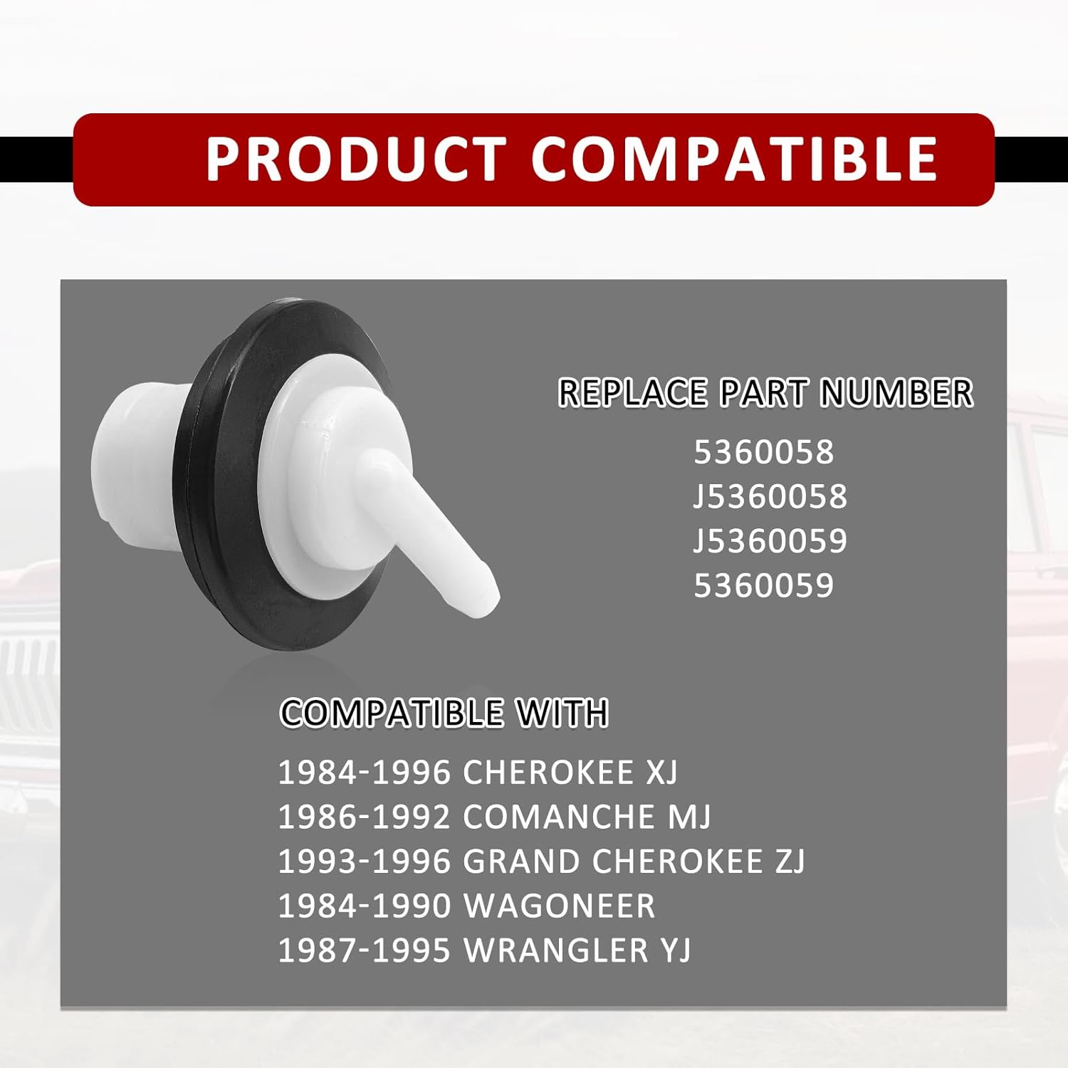 Resposta: O Stymart Gas Tank Vent Rollover Valve é compatível com Jeep Cherokee XJ (1984-1996), Comanche MJ (1986-1992), Wrangler YJ (1987-1995) e Grand Cherokee ZJ (1993-1996). Verifique também os números de referência OE para garantir a compatibilidade.