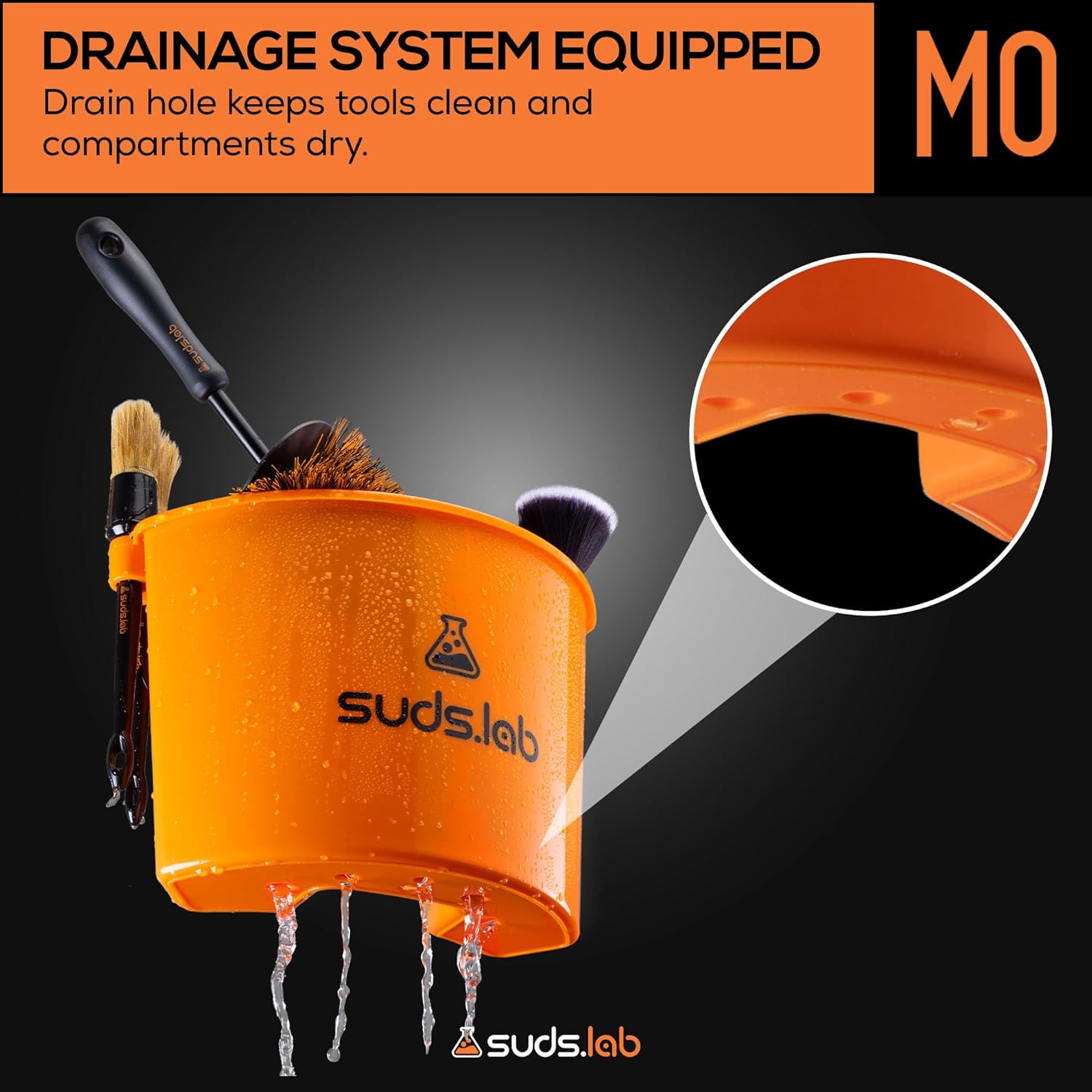 Um dos grandes diferenciais deste organizador é o orifício de drenagem integrado, que mantém suas ferramentas limpas e os compartimentos livres de água suja. Isso assegura que seus utensílios de detalhamento estejam sempre prontos para uso, sem a preocupação de sujeira acumulada. Além disso, o Suds Lab Car Wash Organizer é um organizador de ferramentas portátil versátil, ideal não apenas para lavagem de carros, mas também para limpeza da casa, irrigação de jardins, acampamentos e pescarias. Ele pode até mesmo ser utilizado como um recipiente de armazenamento ou balde de gelo para bebidas.