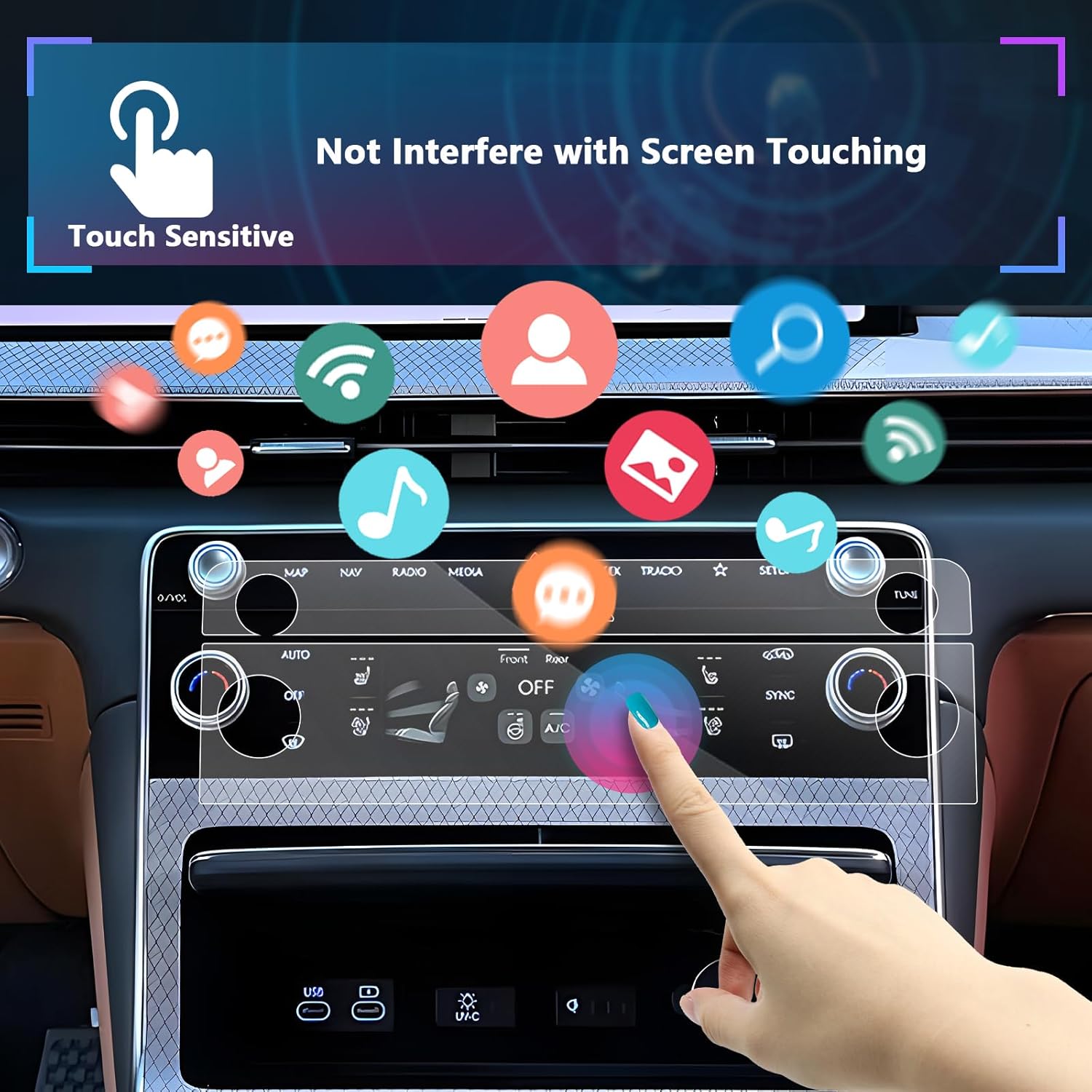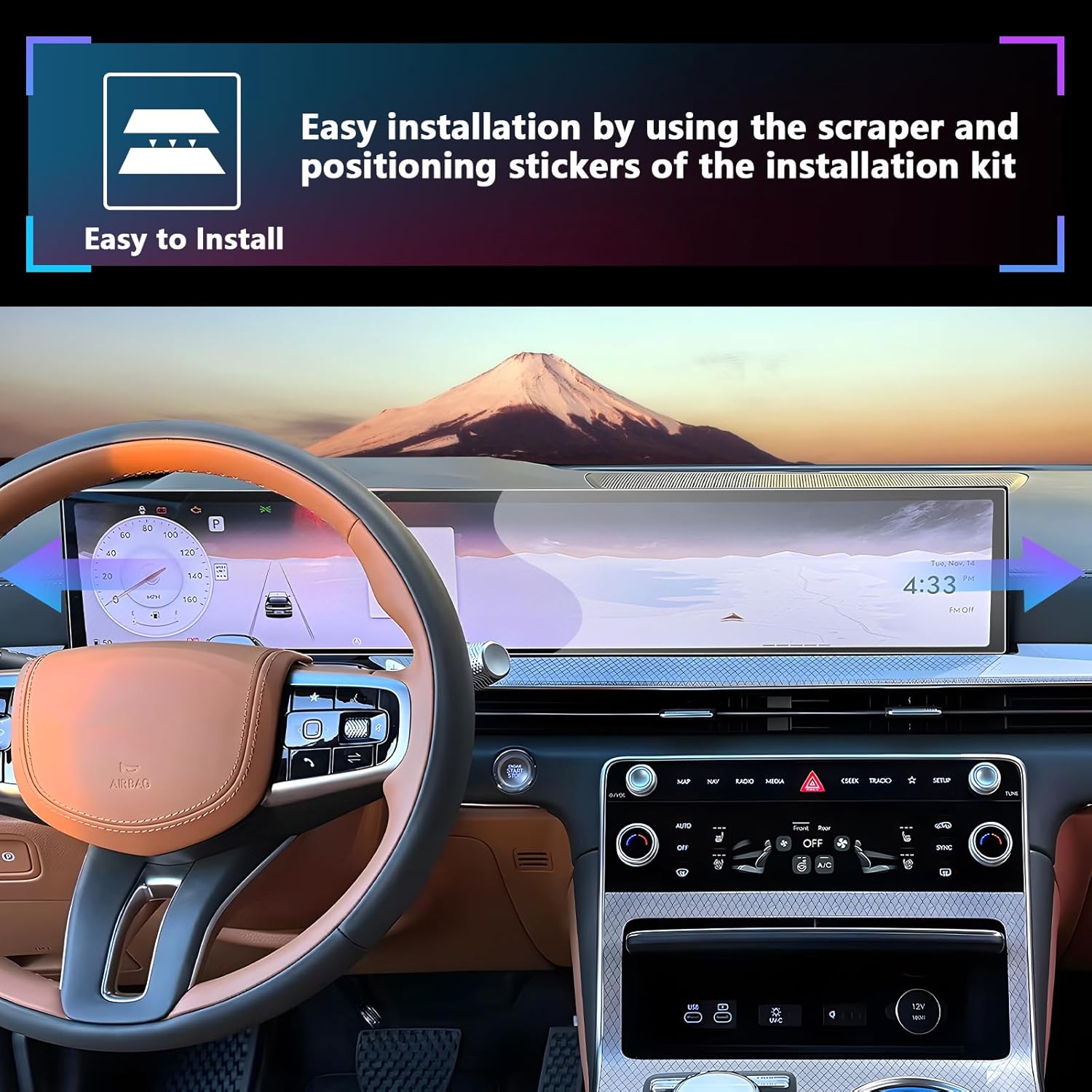 – Ajuste Perfeito: O SXCY 2PCS Nano Soft All-one Screen Protector é projetado especificamente para os acessórios do Genesis GV80 e G80 2025. Com cortes precisos, ele protege a tela sem afetar a sensibilidade ao toque. É importante ressaltar que a película protetora é adequada apenas para telas totalmente planas. Caso a sua tela apresente curvaturas, recomenda-se não adquirir este produto e entrar em contato conosco.
