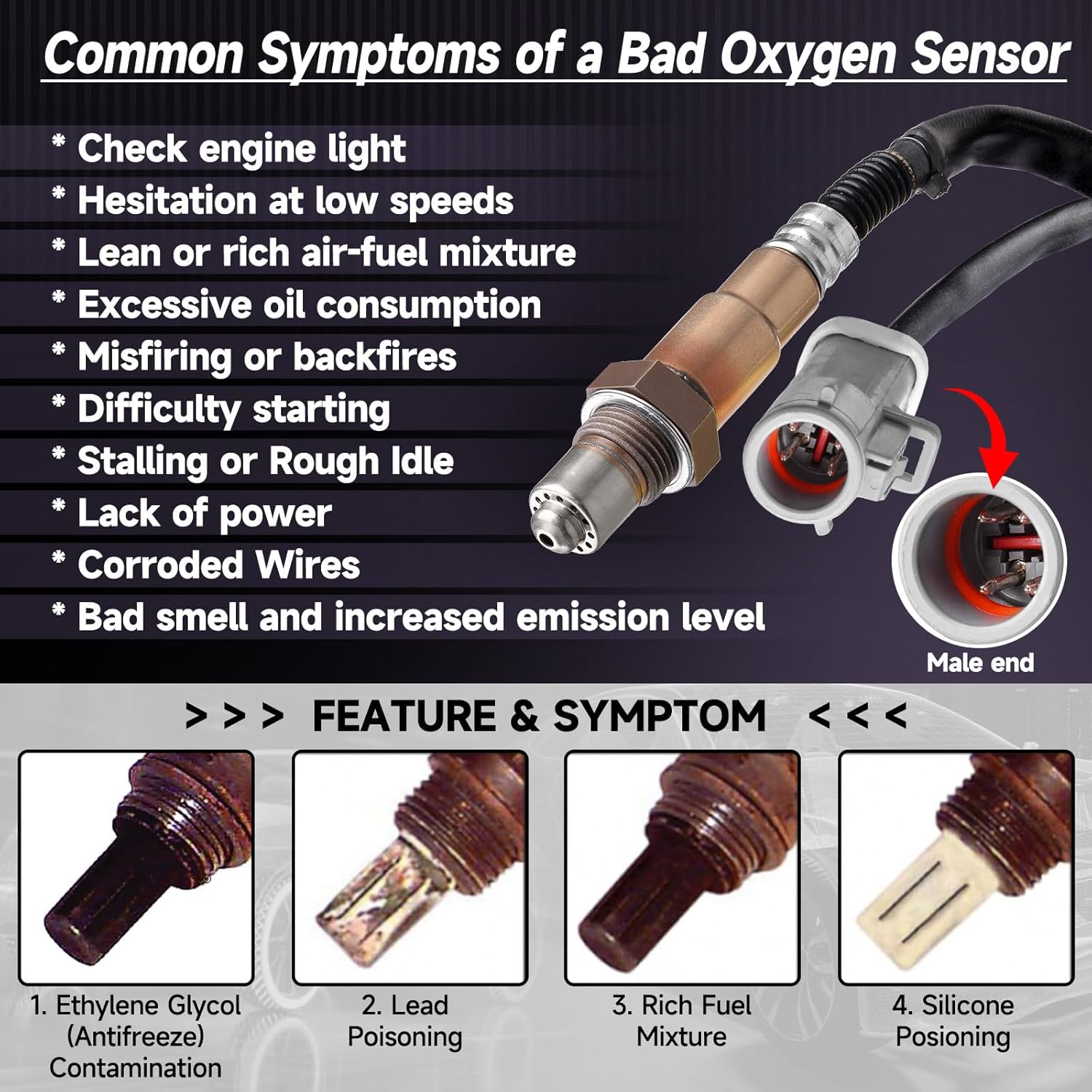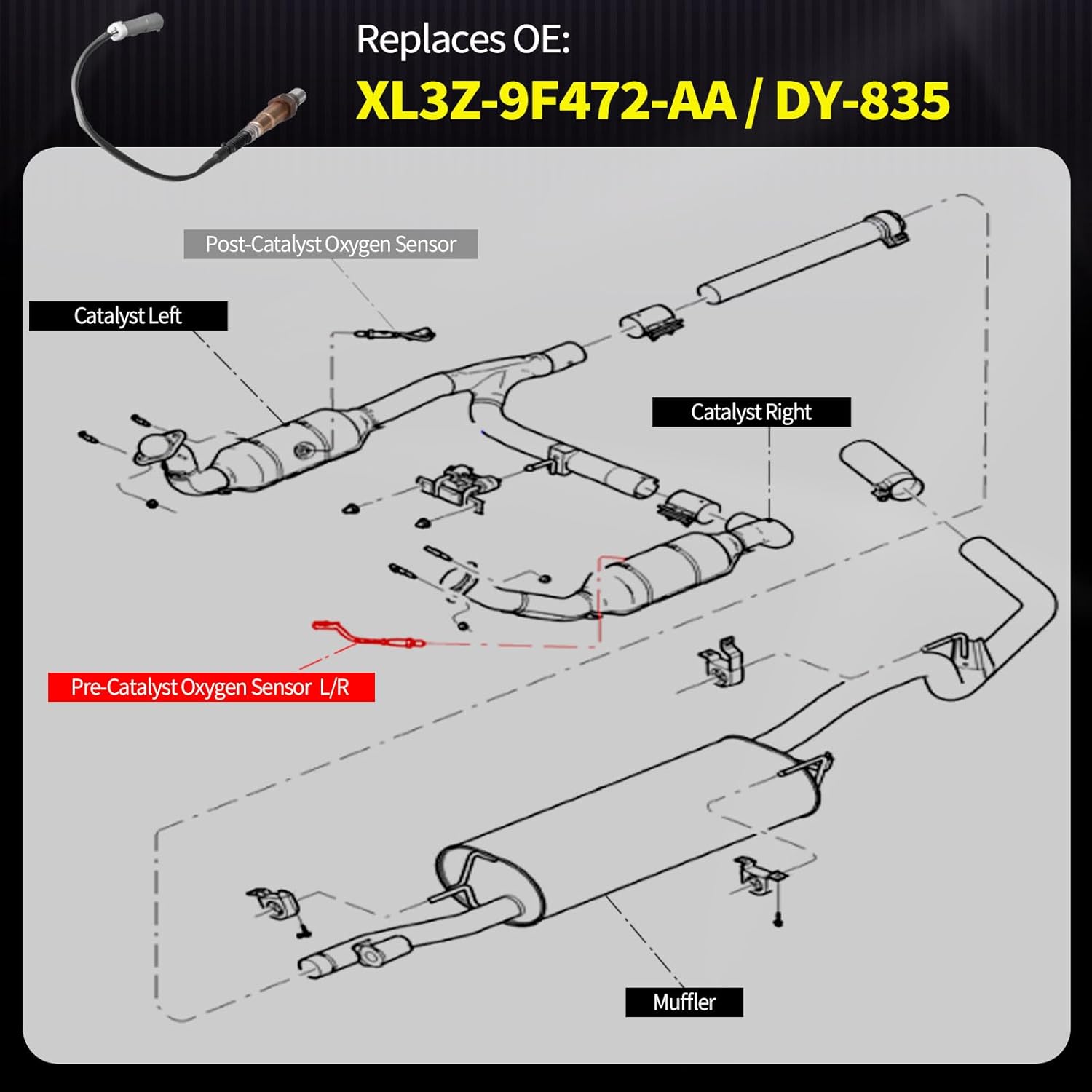 O comprimento do fio do sensor é de 11,42 polegadas (29 cm), permitindo uma substituição perfeita da peça original com o número OEM XL3Z-9F472-AA. Para motores que não estão listados, recomenda-se consultar o sensor de oxigênio upstream com o número OEM 8F9Z-9F472-G. Para sensores downstream, utilize o número OEM 4L3Z-9G444-AA.