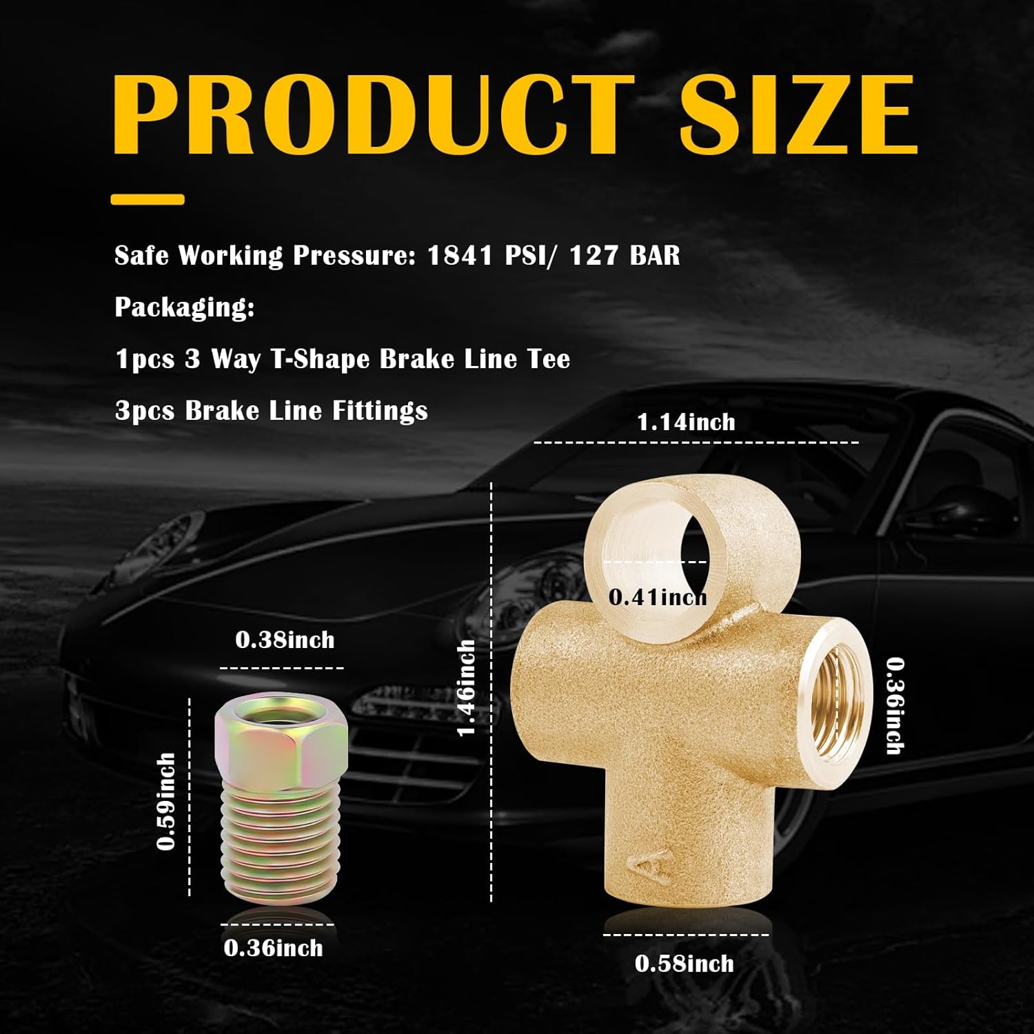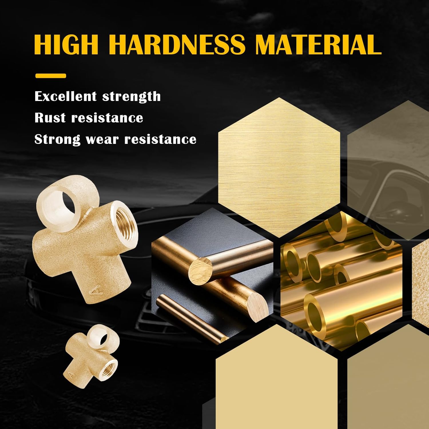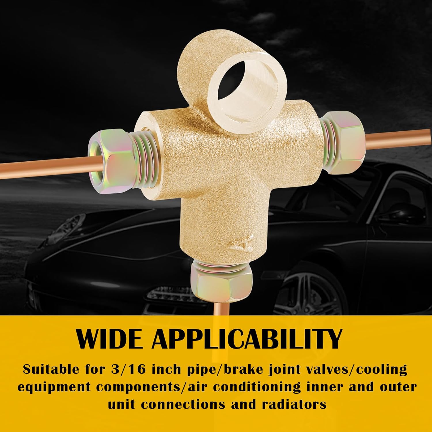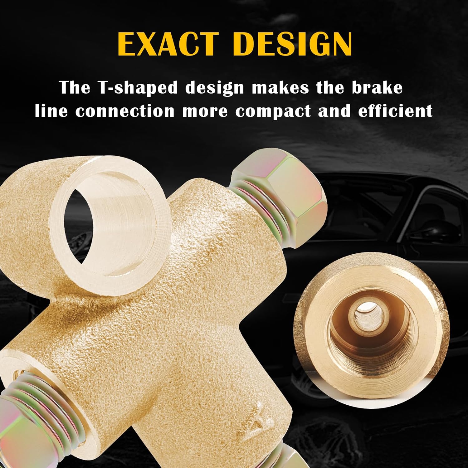 HIGH HARDNESS MATERIAL: Este tee de linha de freio é fabricado em cobre de alta qualidade, conhecido por sua excelente resistência e durabilidade. O material é capaz de suportar altas pressões e mudanças frequentes de estresse no sistema de freios, permitindo um uso estável a longo prazo.