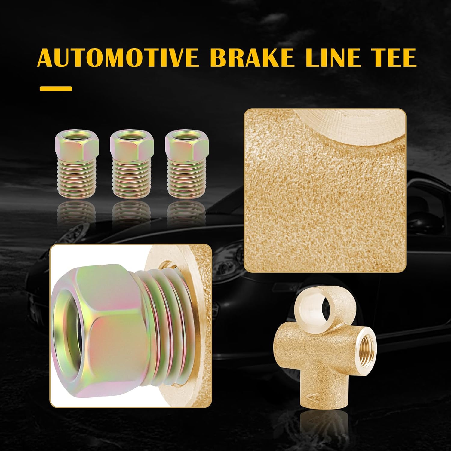 HIGH HARDNESS MATERIAL: Este tee de linha de freio é fabricado em cobre de alta qualidade, conhecido por sua excelente resistência e durabilidade. O material é capaz de suportar altas pressões e mudanças frequentes de estresse no sistema de freios, permitindo um uso estável a longo prazo.