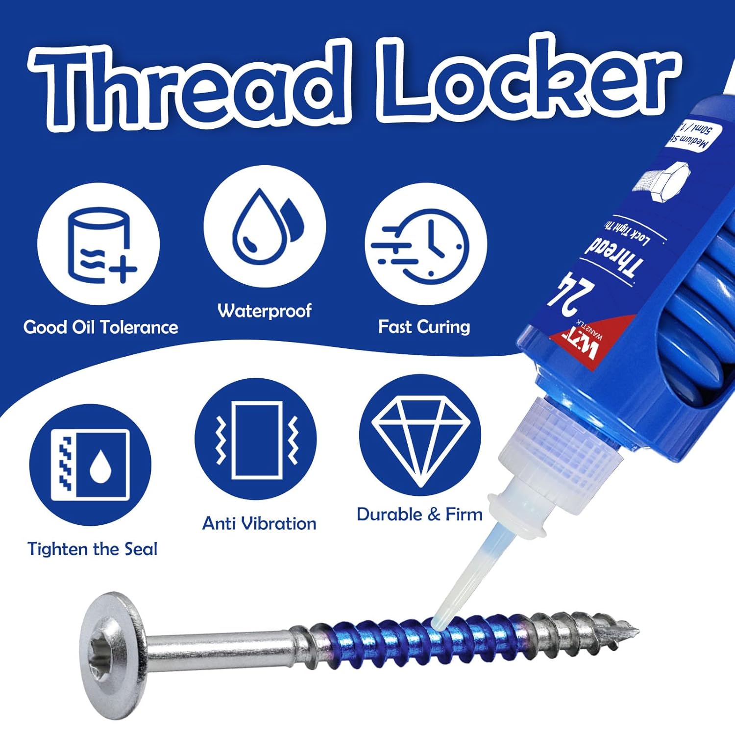 Descrição do Produto: Thread Lock Bule, 243 Medium Strength Lock Tight Threadlocker Anti-Rust