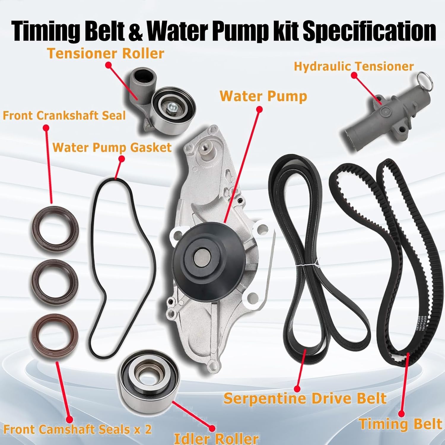 ALTA QUALIDADE: O nosso kit de correia dentada com bomba d’água passou por rigorosos testes e atende aos padrões da indústria. Utiliza materiais de alto desempenho que reduzem as fissuras causadas pela deformação da correia, possui longa vida útil, baixo nível de ruído, baixa resistência à transmissão e operação suave. Além disso, pode ser substituído diretamente, proporcionando uma excelente experiência de condução.