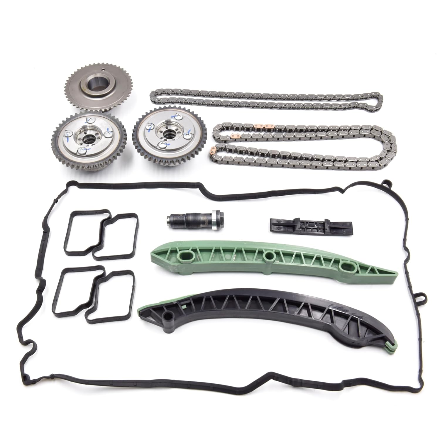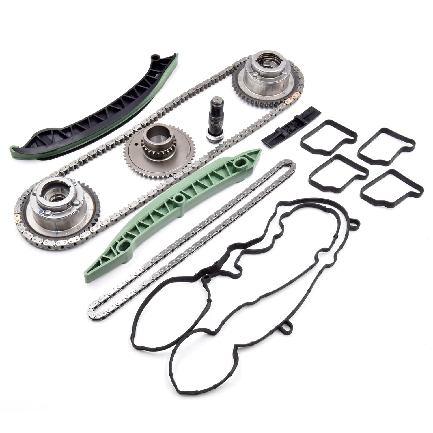 • 【Package Includes】- O pacote inclui: 1 Corrente de Distribuição, 2 Ajustadores de Comando, 1 Corrente do Eixo de Equilíbrio, 1 Tensionador da Corrente de Distribuição, 1 Engrenagem de Distribuição, 3 Guias da Corrente de Distribuição, 1 Junta da Tampa de Válvulas, 4 Juntas de Velas.