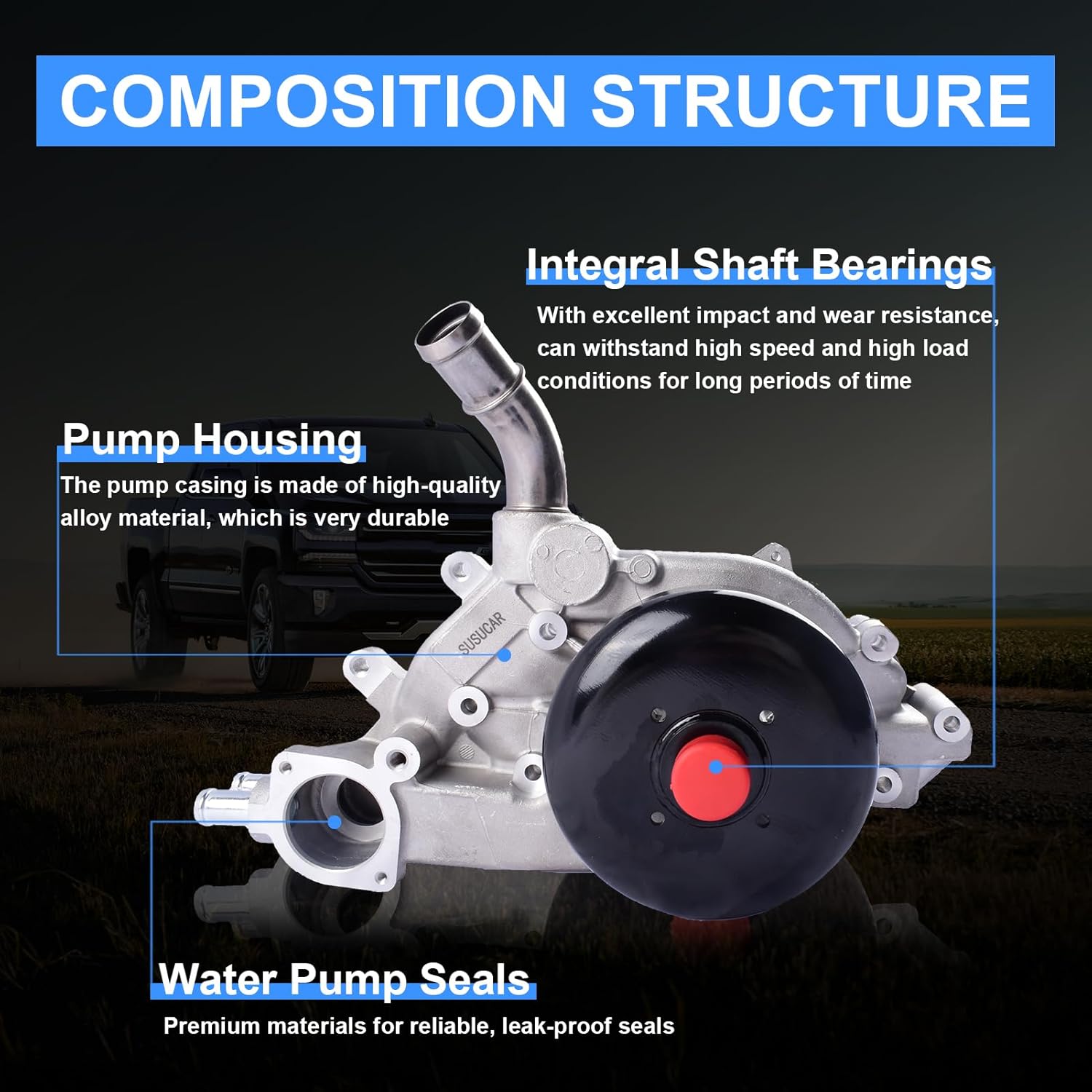 – Bomba d’Água: O kit AW5087 é compatível com o Cadillac Escalade (2002-2004) 5.3L/6.0L, Chevrolet SSR (2003-2004) 5.3L, Chevrolet Avalanche 1500 (2002-2004) 5.3L, Chevrolet Camaro (1998-2002) 5.7L e Chevrolet Corvette (1997-2004) 5.7L.
