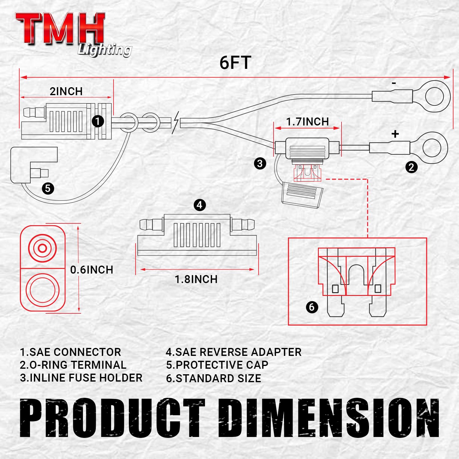 Descrição do Produto: TMH 6 FT – 18G, SAE to O Ring Terminal Harness com Fusível de Proteção de 7.5A e Conector Rápido