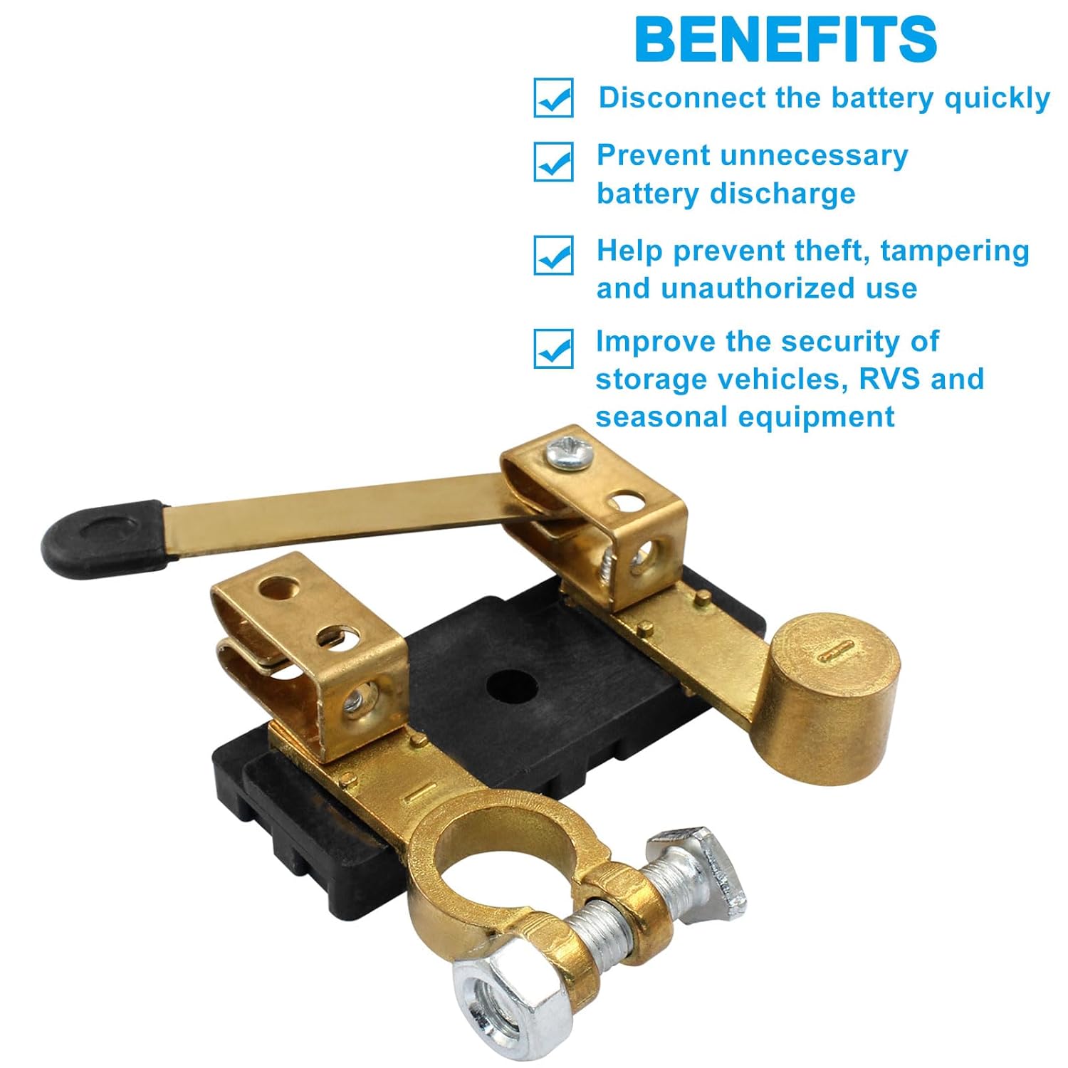 Uma das principais vantagens do Top Post Battery Disconnect Switch é a proteção da bateria. Ao isolar a bateria do sistema elétrico, este interruptor previne o esgotamento indesejado da energia, prolongando a vida útil da bateria e protegendo contra furtos ou uso não autorizado do veículo. Sua compatibilidade universal com sistemas de 12V e 24V torna-o um acessório essencial para quem utiliza diversos tipos de veículos, incluindo carros, barcos, RVs e ATVs.