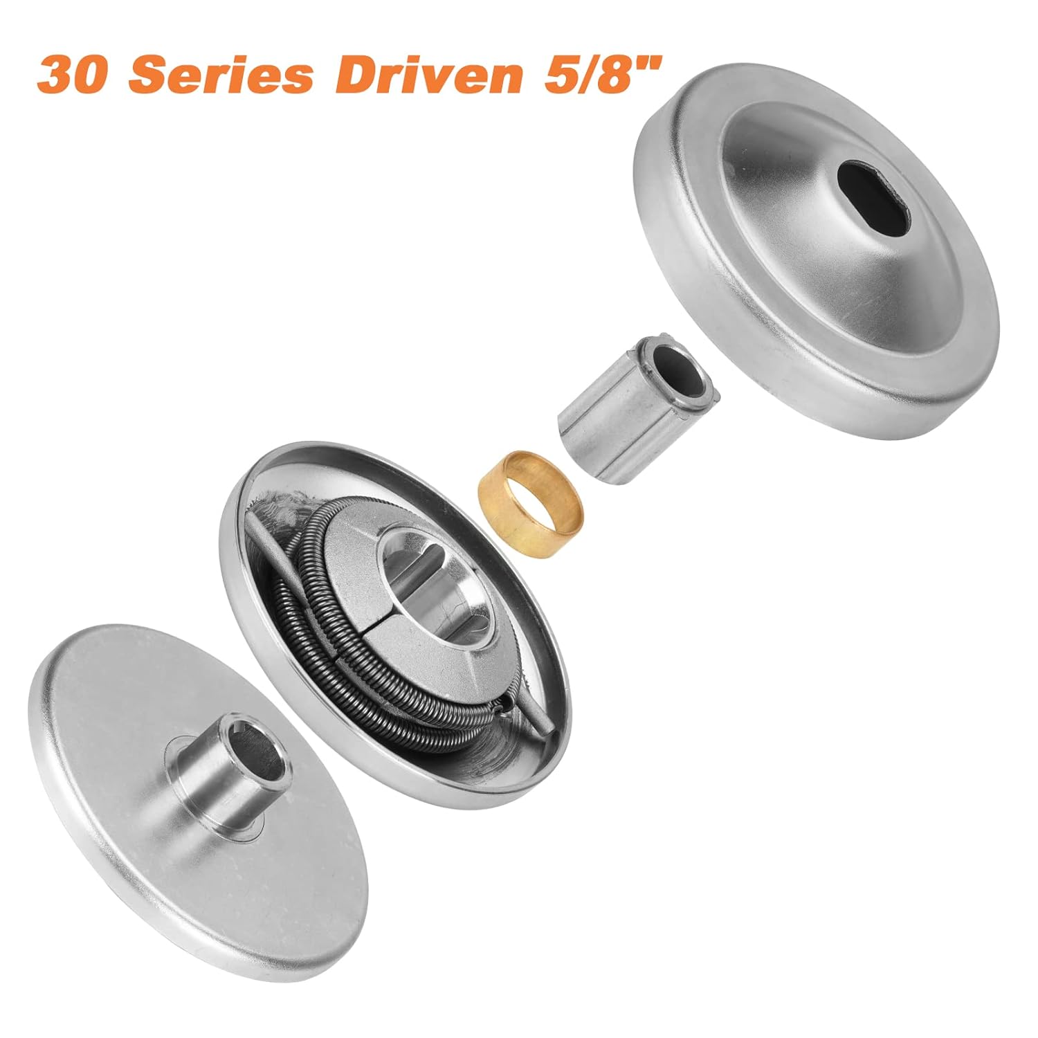 O pacote contém dois dentes de engrenagem: uma engrenagem de 10 dentes para correntes #40, #41 e #420, e uma engrenagem de 12 dentes para corrente #35. O diâmetro total da unidade acionada é de 6” (com polia acionada de 5/8”), e o furo da embreagem do acionador é de 3/4”. Além disso, o kit inclui uma placa de montagem de alumínio, um eixo de jackshaft com engrenagem (corrente não incluída) e um conjunto completo de hardware de montagem.
