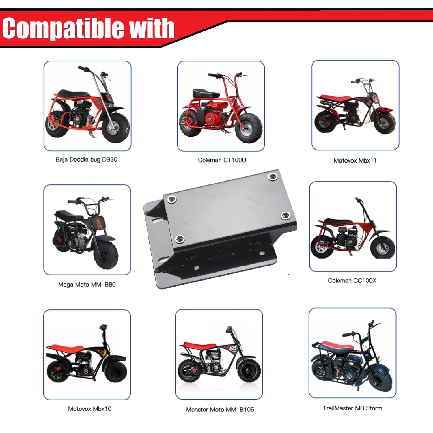 A construção robusta deste motor riser plate oferece proteção adicional em caso de colisões ou impactos, reduzindo o risco de danos ao motor e a outros componentes, mantendo-os elevados do solo. A base sólida é ideal para mini bikes, e a instalação não requer cortes na barra de proteção da corrente, tornando o processo ainda mais prático.