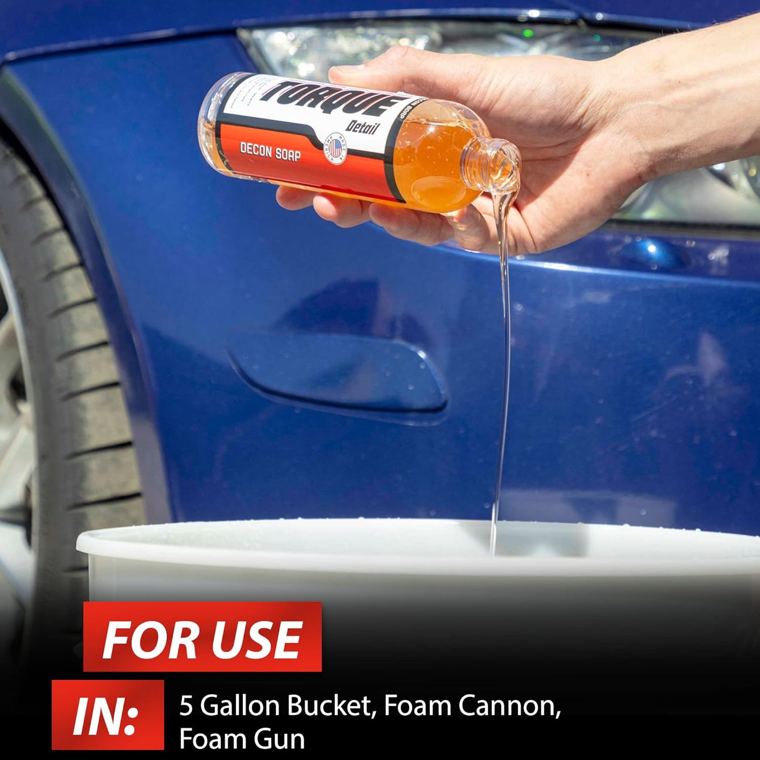 Pacote Torque Detail Decon Wash – Sabão de Decontaminação 8oz com Luva de Lavagem – Shampoo para Carro que Remove Impurezas – Luva de Microfibra Chenille Altamente Absorvente para Limpeza Segura do Seu Veículo