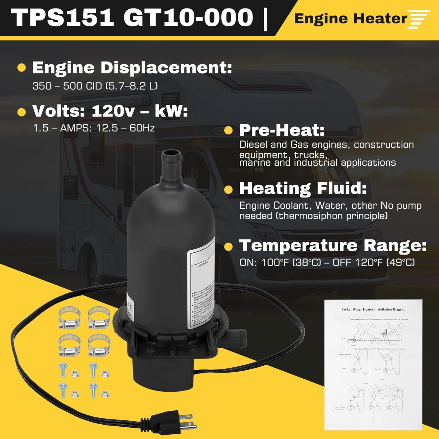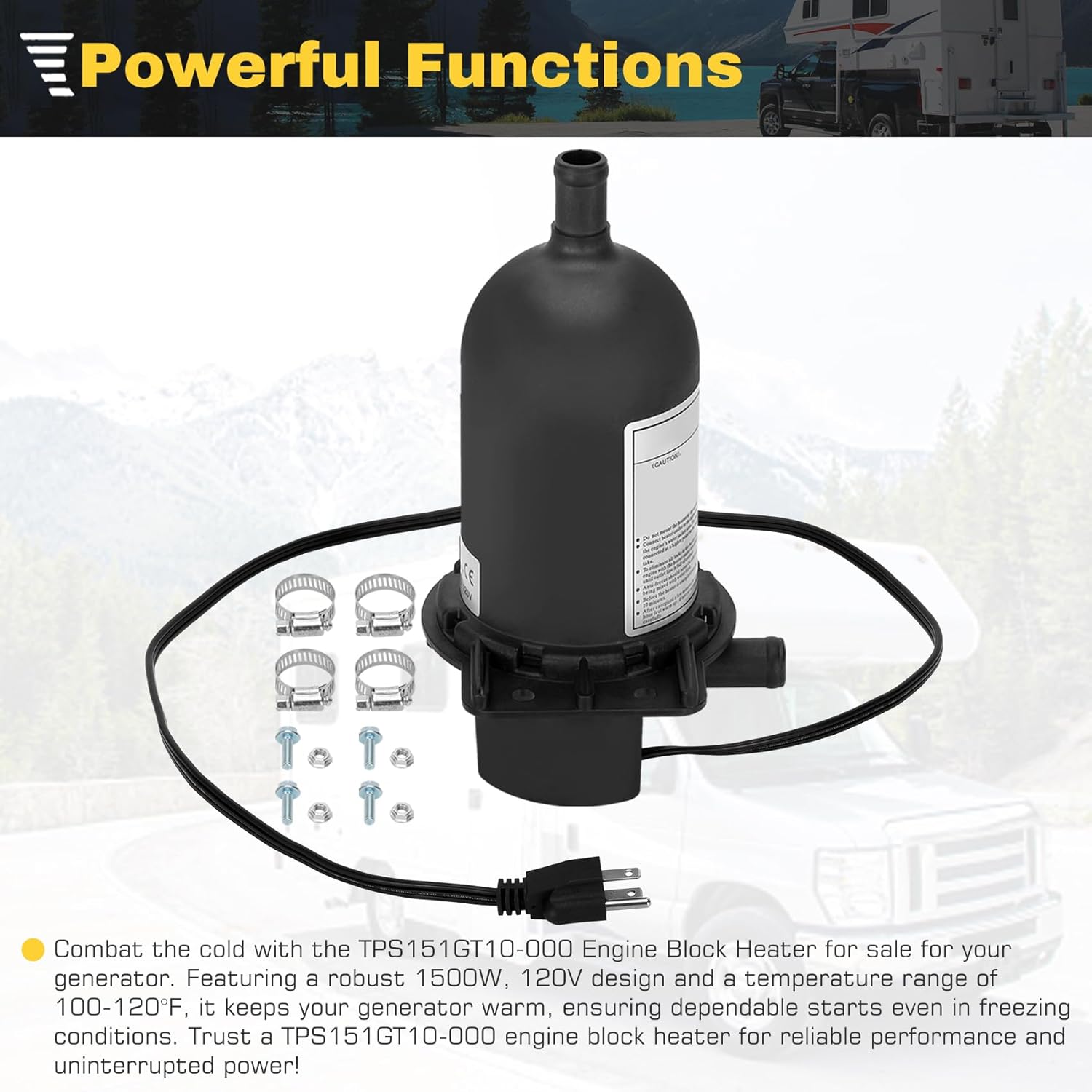 Reviewing: Drkerr TPS151GT10-000 Engine Block Heater compatible with Diesel & Gas engines Generator Tractor Truck Boat, Replace TPS151GT8-000 TPS151GT12-000 590-893, 1500W 120V Option 100-120F Coolant Pre-Heater